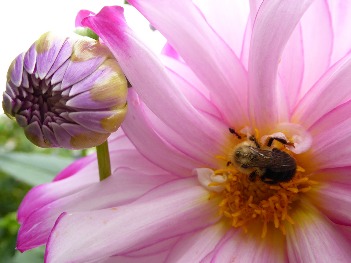 there's still a lot of activity in the backyard this early in october, before we've experienced our first frost. temperature has gotten cold at nights on several occasions (upper 30's) but enough to kill the plants. the daytime temperature is dropping, but only to around the 60's, and the sun - though getting lower everyday - still feels plenty warm when shining directly.