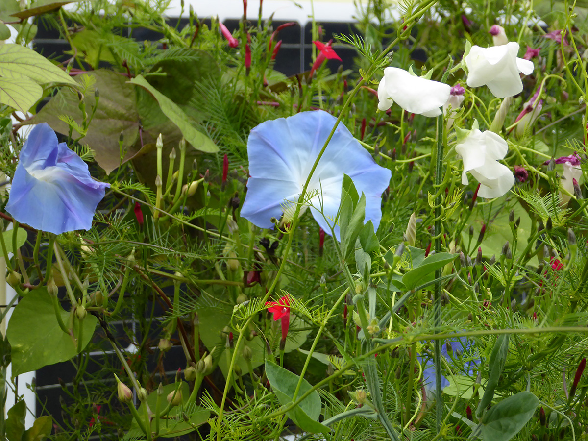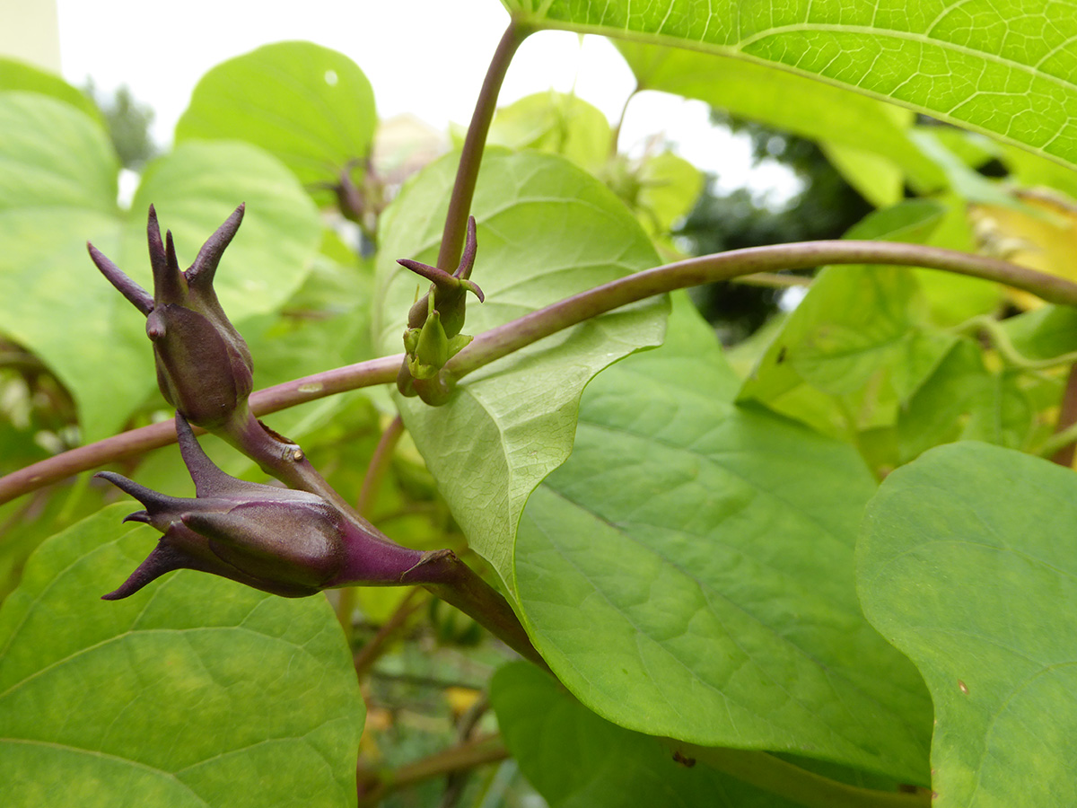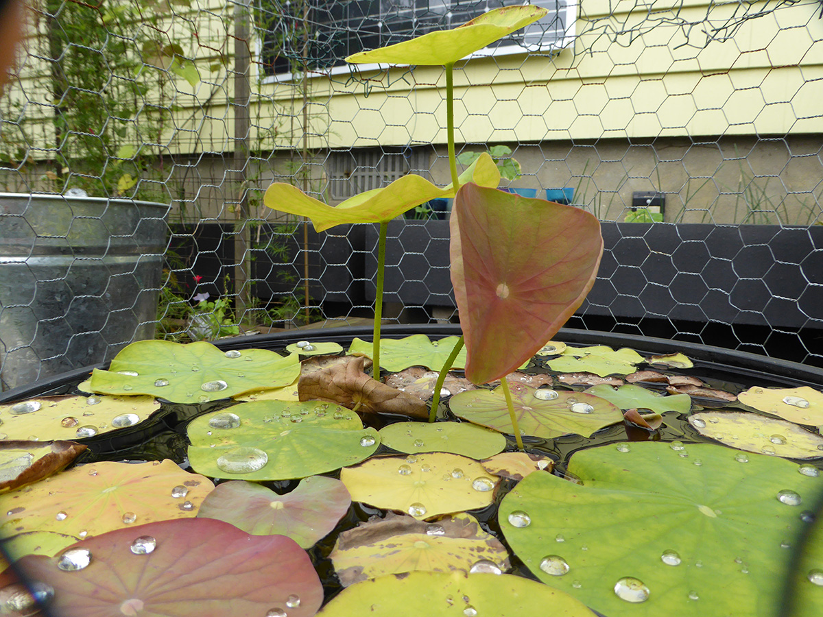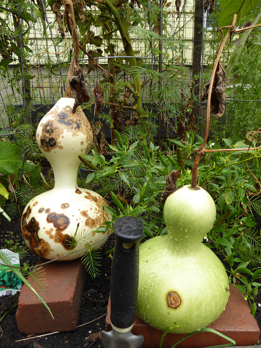 hyacinth beans are one of the plants that seem to be doing well this late in the growing season. a lot of the magenta-colored pea-style flowers have fallen off, leaving behind a pod that will hopefully produce some viable seeds for next season. cherry tomatoes are still growing, i pick a few to eat whenever i go out into the backyard. elsewhere, bigger sized tomatoes are on the vine, very slowly maturing. if we do get a frost, we'll collect all of them and let them ripen indoors.