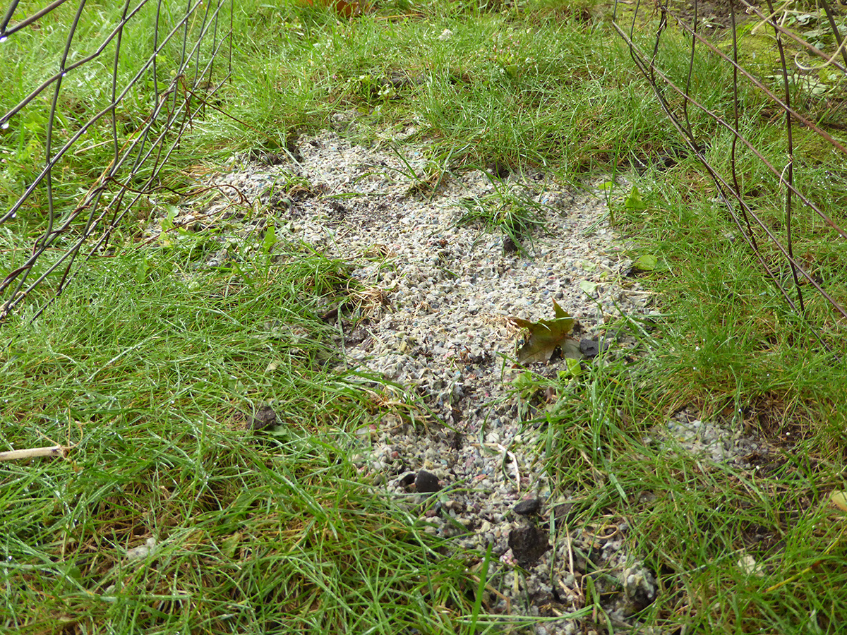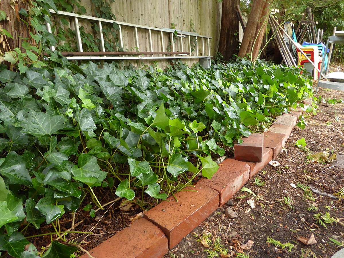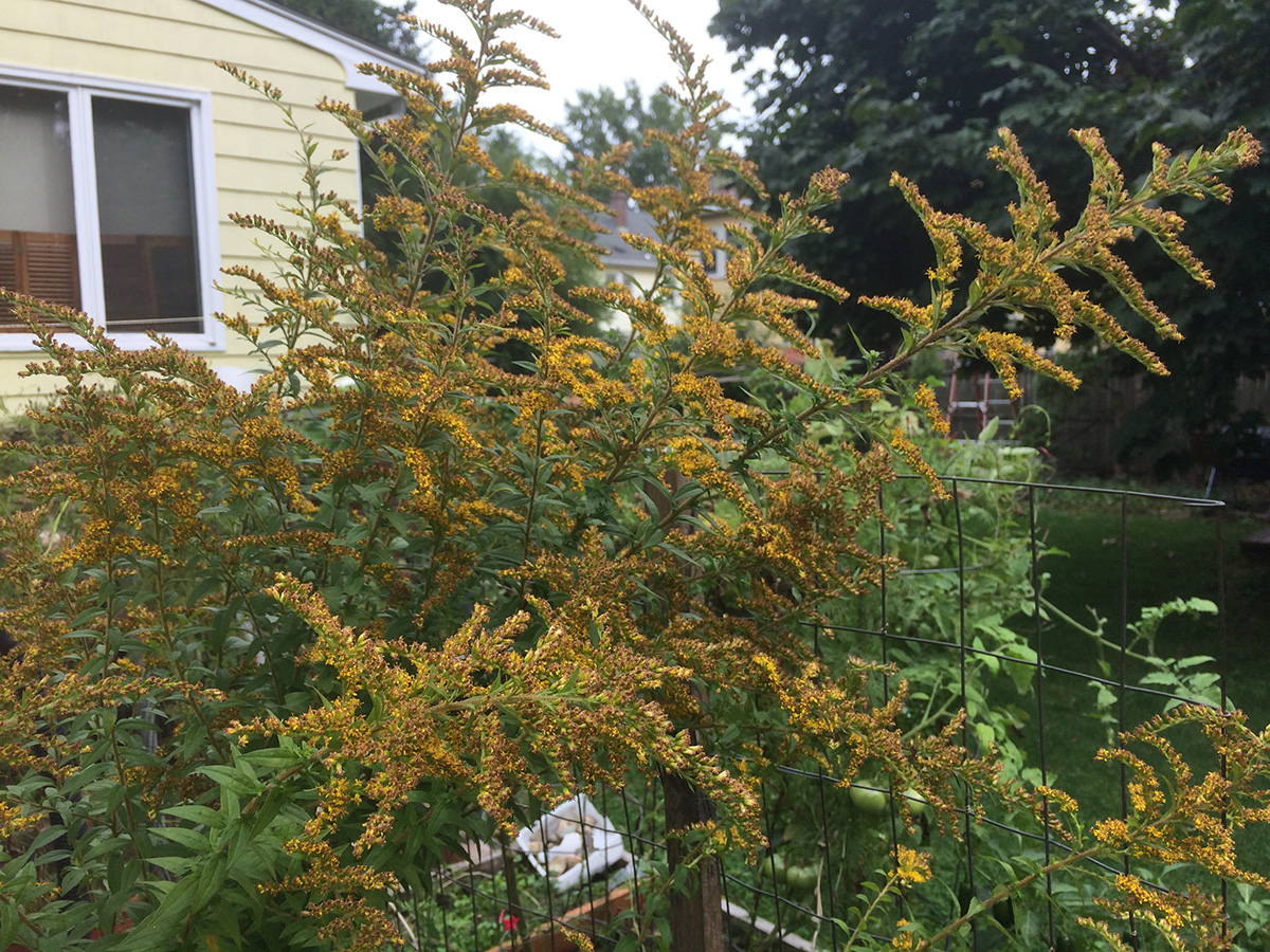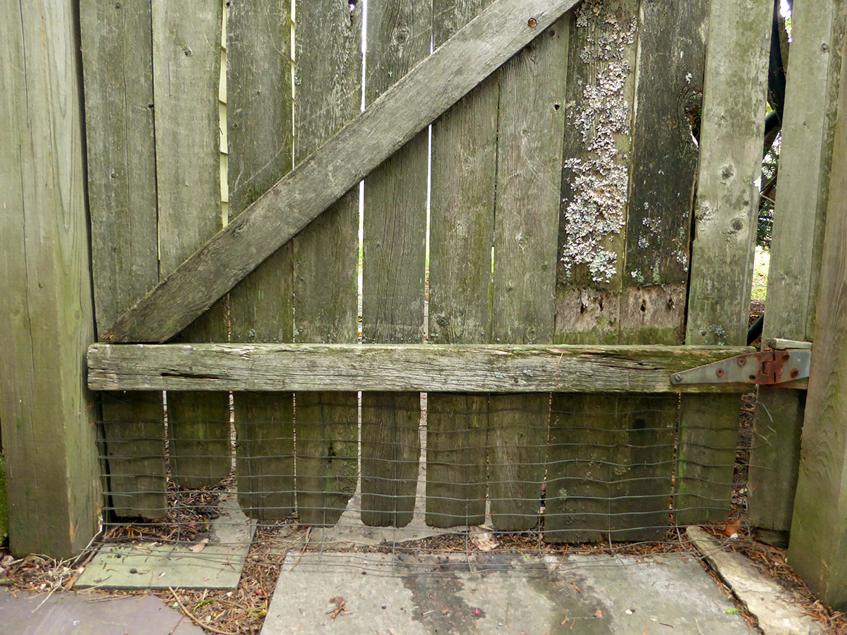 my yard maintenance wasn't only solely about lawn care. i also cut down most of the goldenrod flowers. i noticed bees had stopped pollinating them, which was a good sign that the flowers were going to seeds. i had to throw them away before that happened, to keep the goldenrods from spreading everywhere. the only patch of goldenrod still around is by the southern fence between the two flowering trees. i pruned back the ground ivy growing beyond the brick border edge. finally i stapled back the wire mesh underneath the eastern wooden fence door, which has a tendency to fall off every so often. the mesh is there to prevent animals from crawling underneath the door (mostly to keep out rabbits).