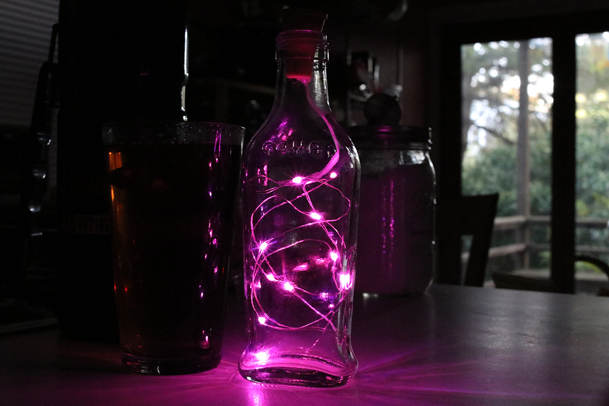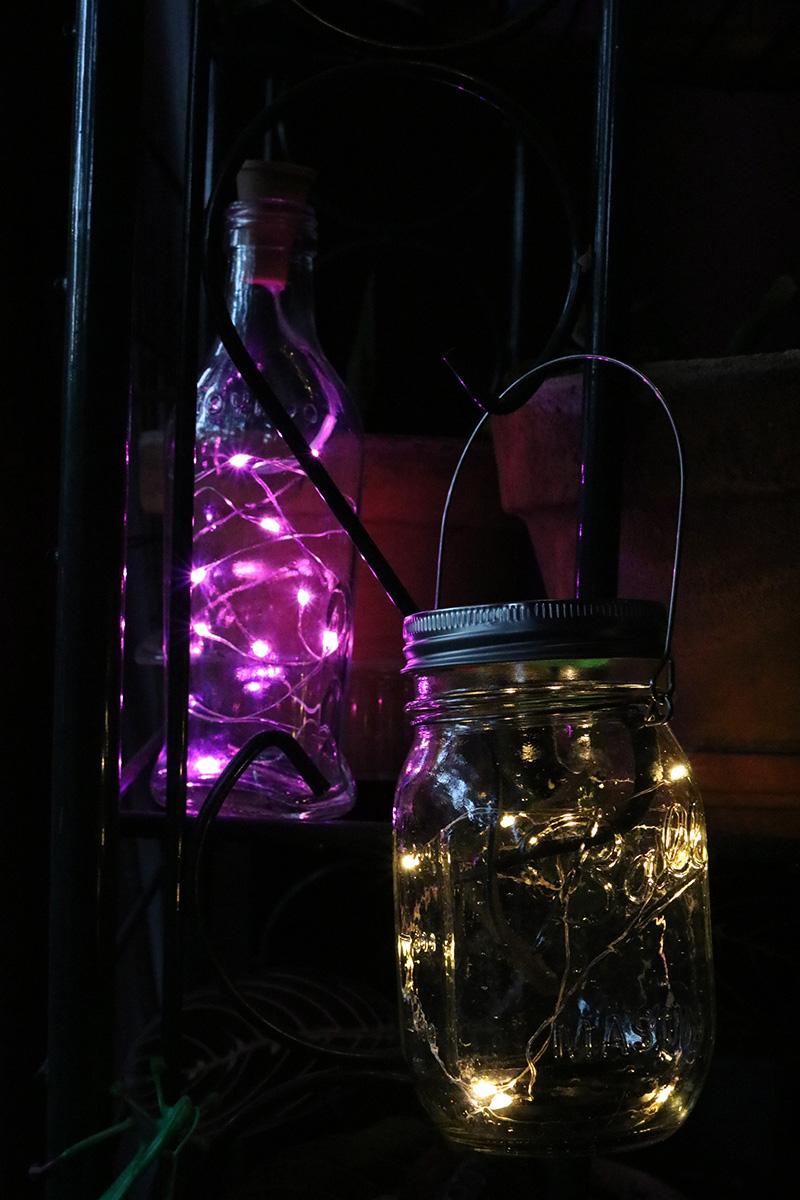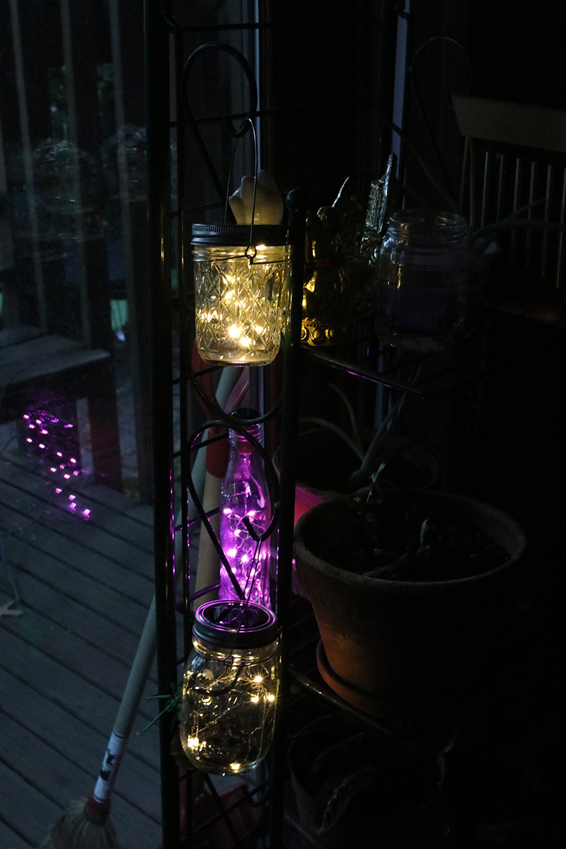 when i came home there are two packages for me in the foyer: a pack of alligator clips and a solar-powered rubber cork stopper string light. the cork stopper light is cool, not sure how much electricity it can actually store. the rubber cork is also completely sealed, so no way to replace the battery. the cork isn't very elastic, i couldn't really squeeze it into a bottle, it's more of a solid stopper, but cool nevertheless. speaking of solar string lights, my amazon seller finally refunded by $7 for the handful of solar mason jar lights that leaked water. i brought a few home to test, so i could figure out where exactly is it leaking from, so that maybe i could fix it with silicone caulk.
