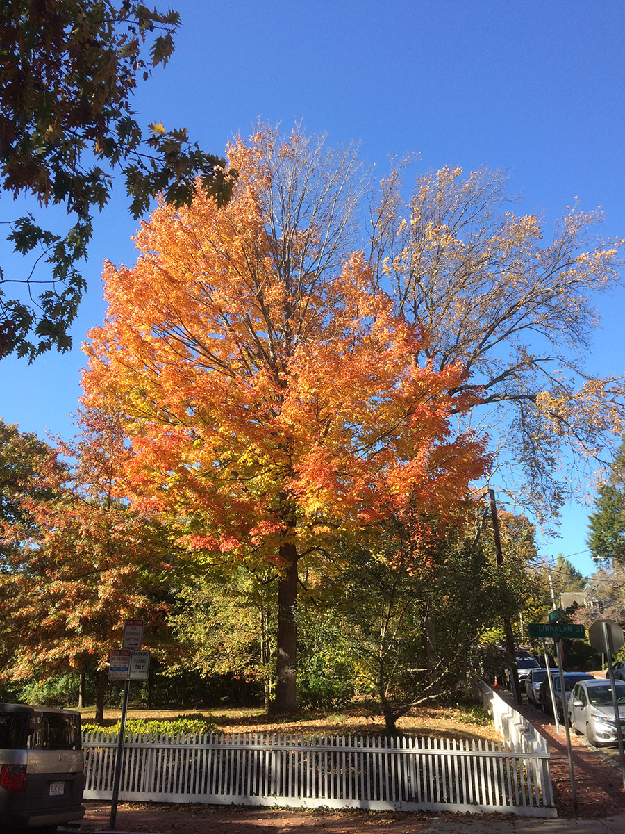 i went to the cafe in the late morning to drop off the ice cream i bought last night. temperature was in the lower 60's and i wore a hooded sweatshirt but the sky was a crystal clear blue and i warmed up quickly after a few minutes of biking, a picture perfect autumn day. my sister texted to let me know she got some soft pretzels for me; i was not happy because i'm trying to lose weight, and being on a soft pretzel diet wasn't going to work, i should've told her earlier. by the time i arrived in belmont, i stripped down to just a t-shirt and worked comfortably in the backyard.