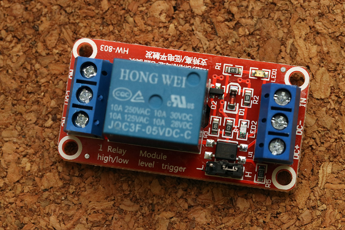 one of my relay modules (HW-803 with optocoupler, 99¢) arrived in the mail. this one only has one channel, the other one i ordered had two. i don't have a project for it yet, but nice to have in case i ever need to rig up my own light switch.