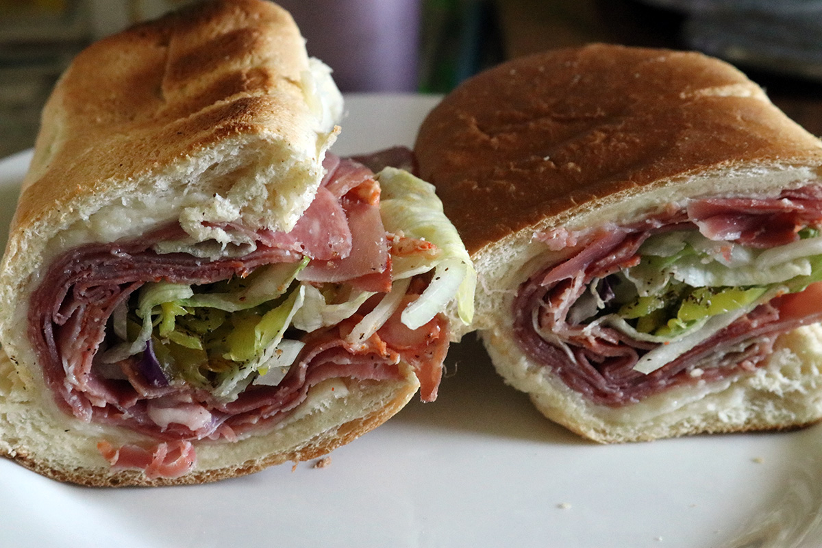 i made italian subs with the ingredients i bought yesterday. i didn't think my parents had any hot pepper rings until i found an old jar in the back of the fridge.