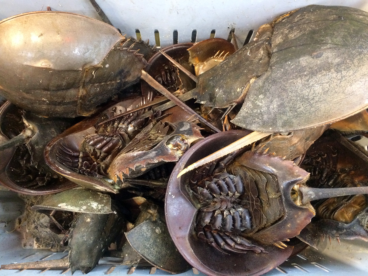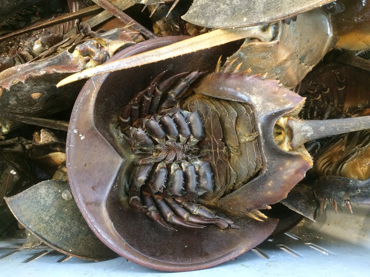 they sell a lot of strange things in the seafood department of a typical asian supermarket, but i don't think i've ever seen horseshoe crabs before. i think they were endangered, or at least vulnerable? maybe they're farm raised. but horseshoe crabs seem so bony and alien, is there really anything edible?