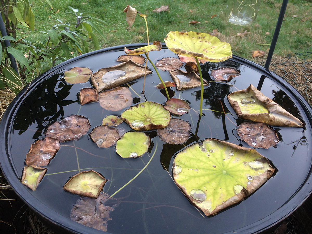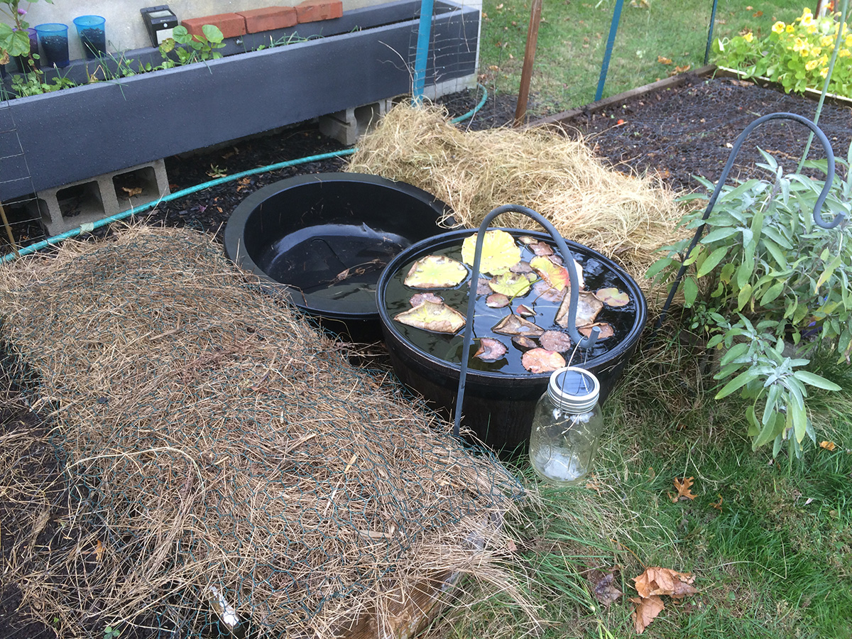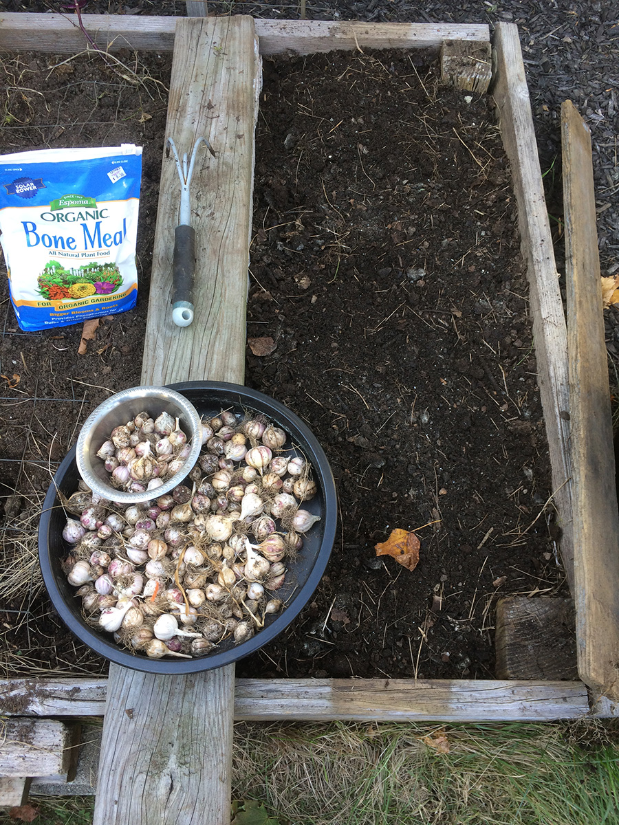 i planted two new garlic patches on either side of the lotus barrel. these are the small garlic cloves grown just for the garlic sprouts.