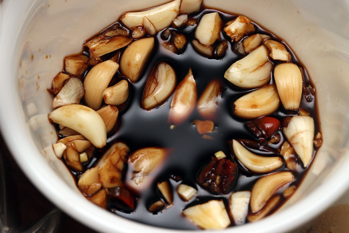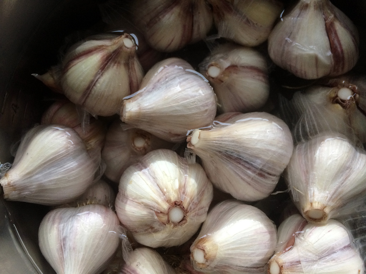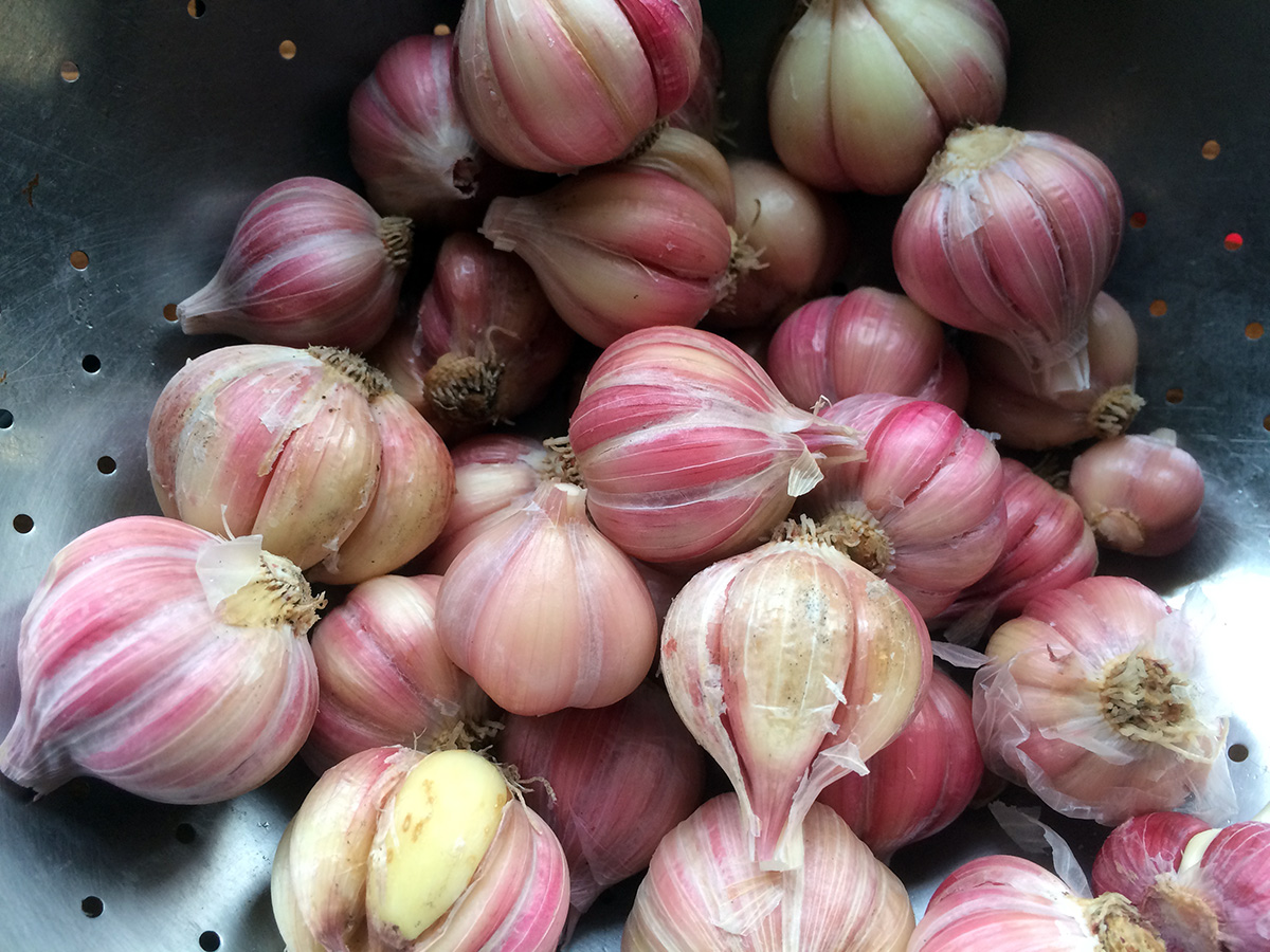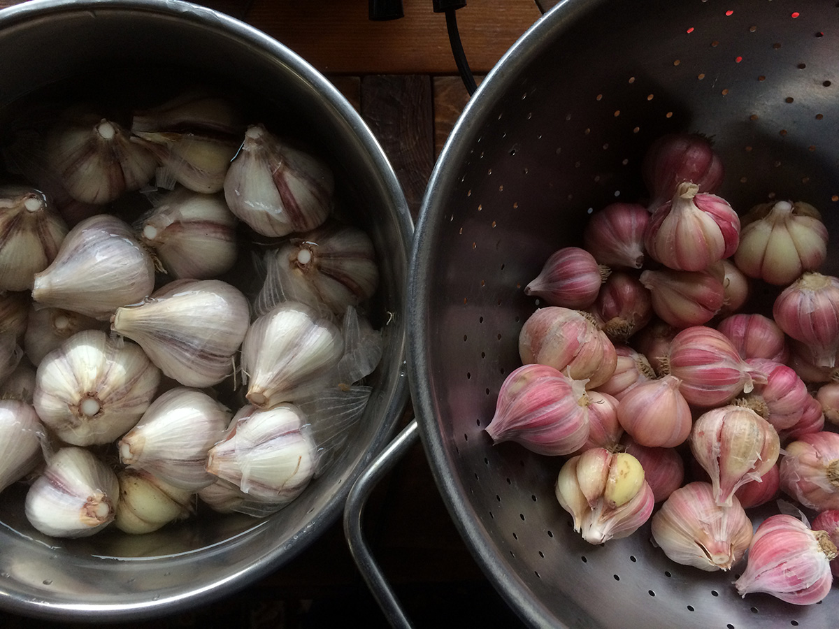 i planted two new garlic patches on either side of the lotus barrel. these are the small garlic cloves grown just for the garlic sprouts.