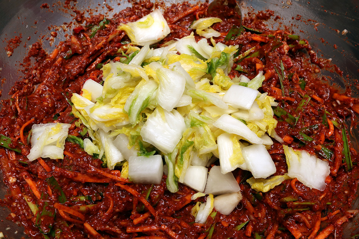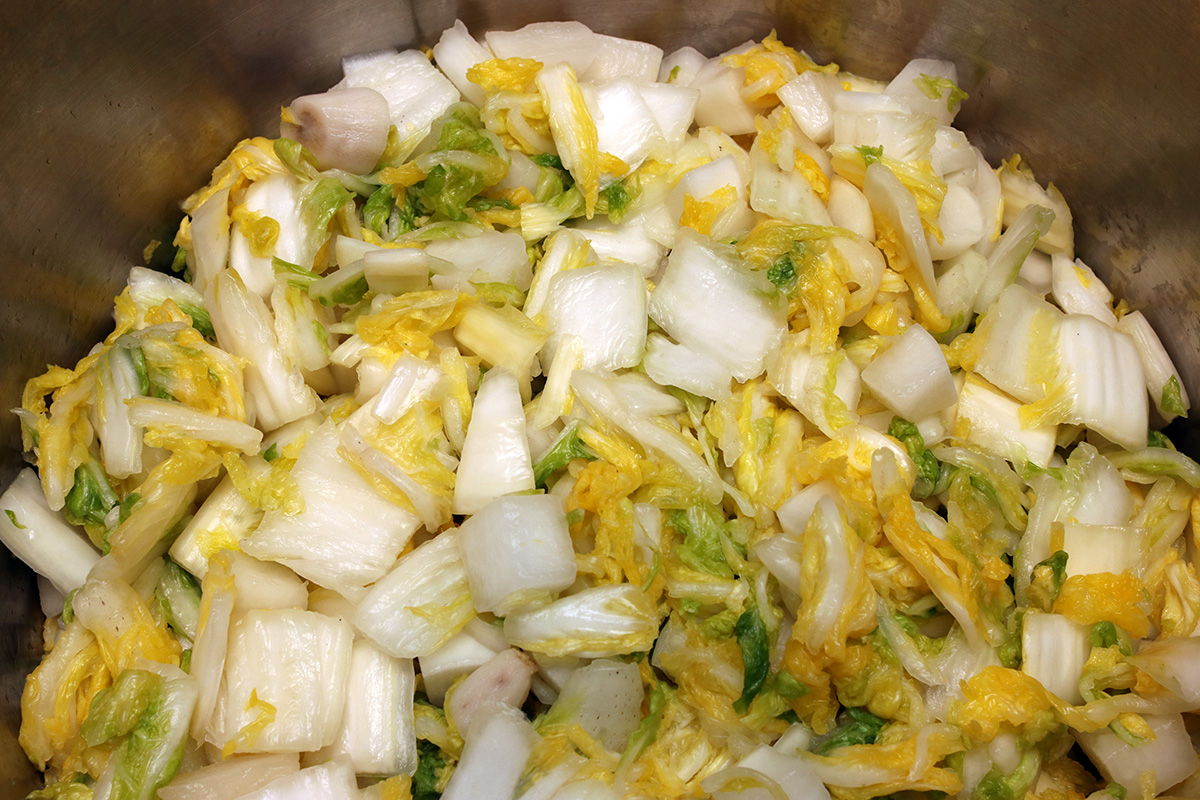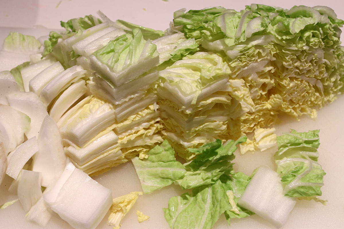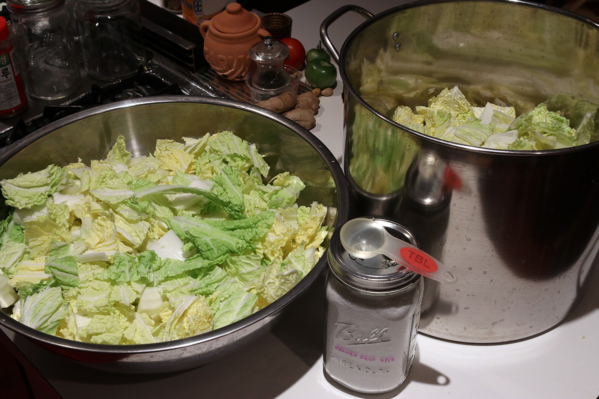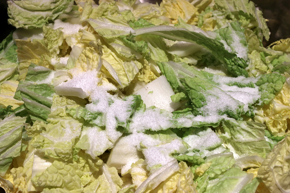 8.40 lbs. napa cabbage 1.98 lbs. daikon radish 6 tbsp kosher salt