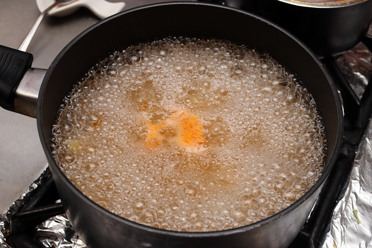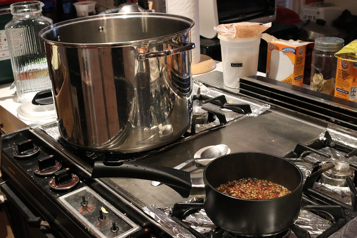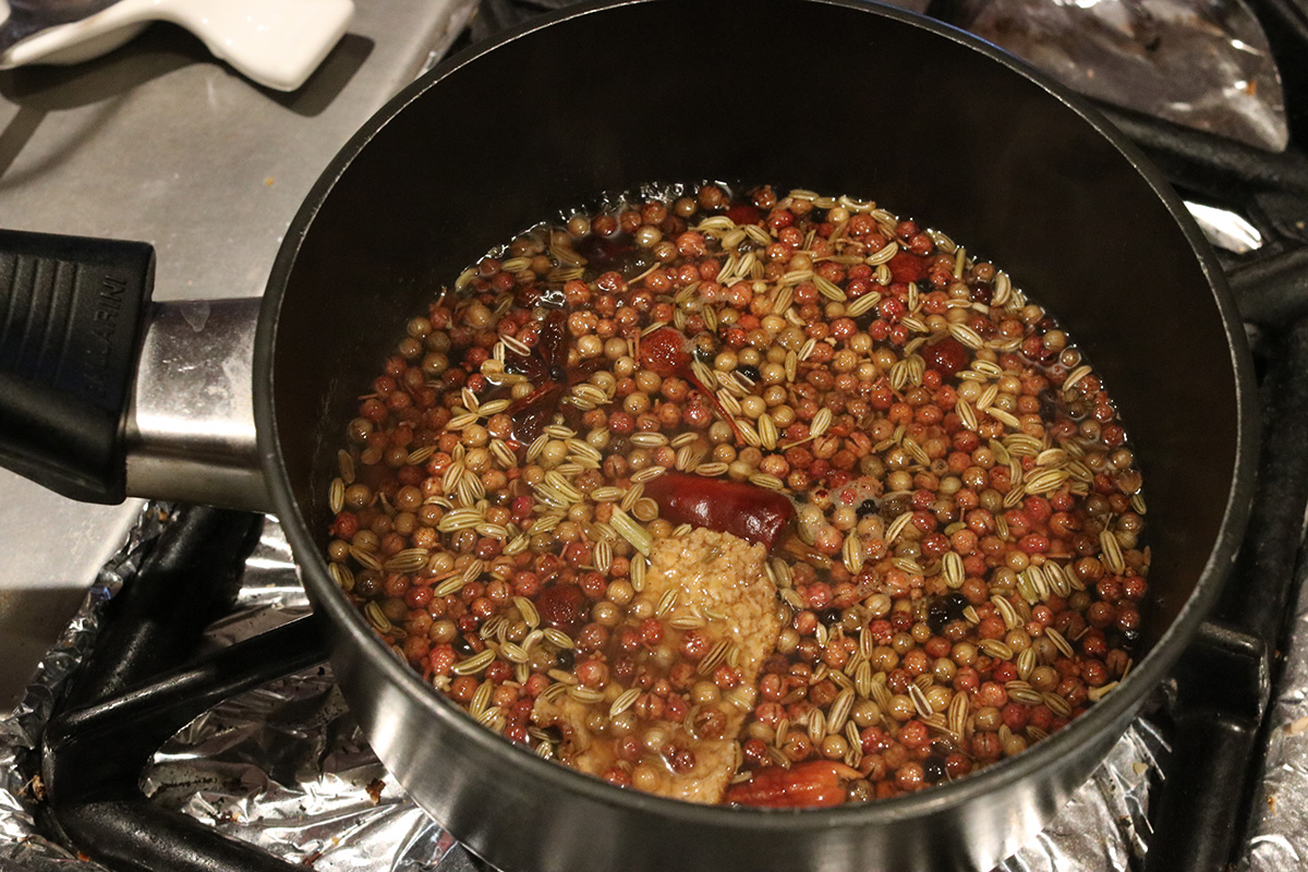 the brine had cooled down enough to begin making the paocai, but i had to do one more important thing: boil the packet of sichuan paocai spices in a cup of water to release the flavors. i added a tbsp of sichuan peppercorn into the mix as well. i left the boiled spices to cool uncovered.