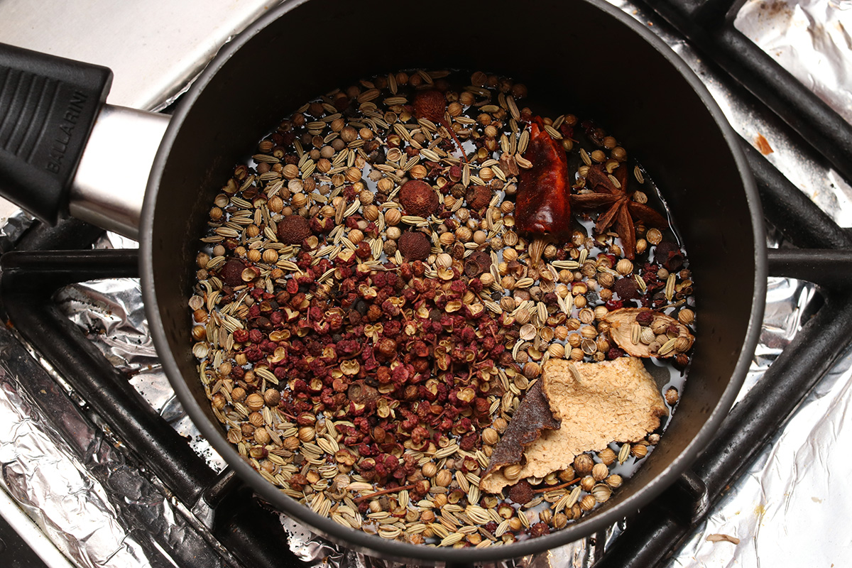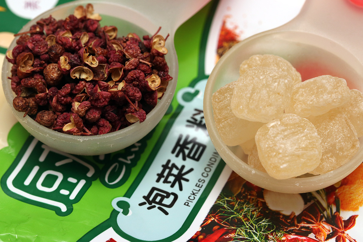 18 cups boiled water 6 oz. paocai salt* handful sichuan peppercorns 1/4 cup chinese baijiu 6 tbsp rock sugar sichuan paocai spices** |