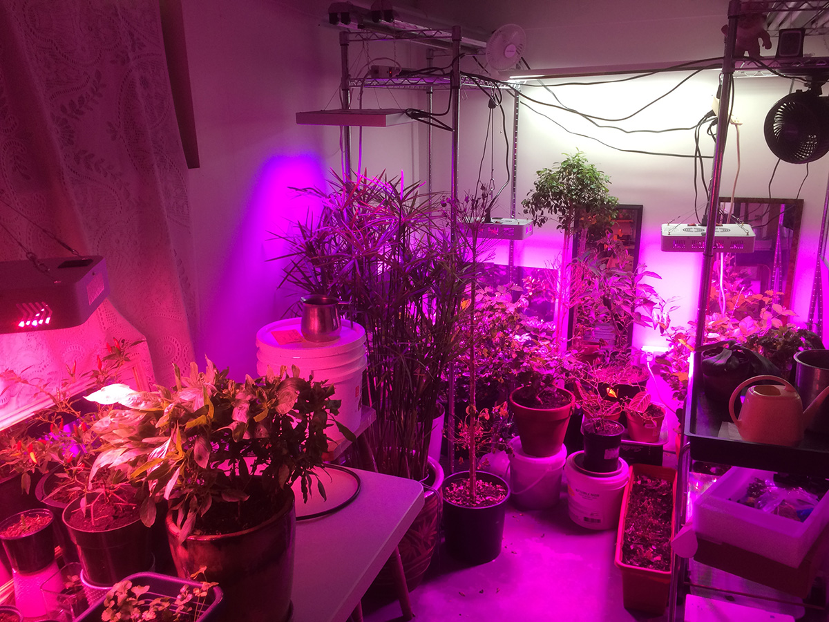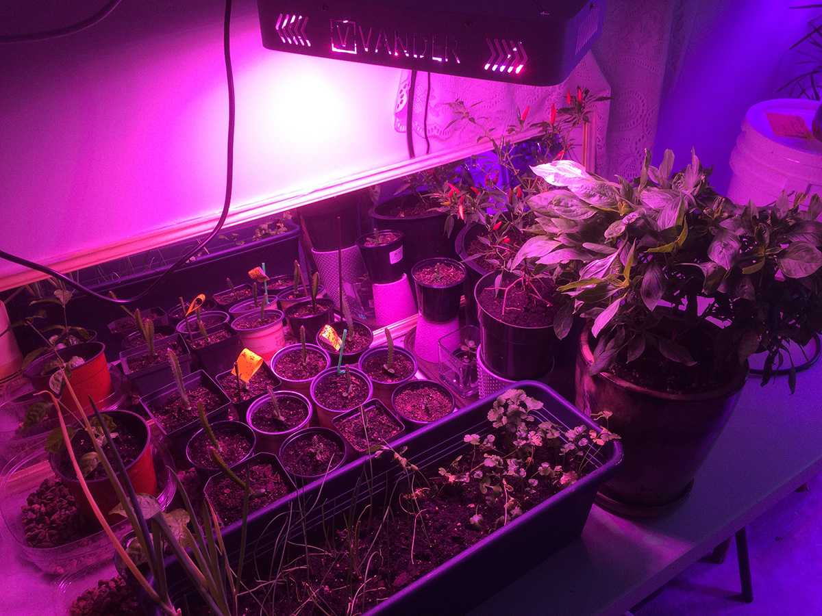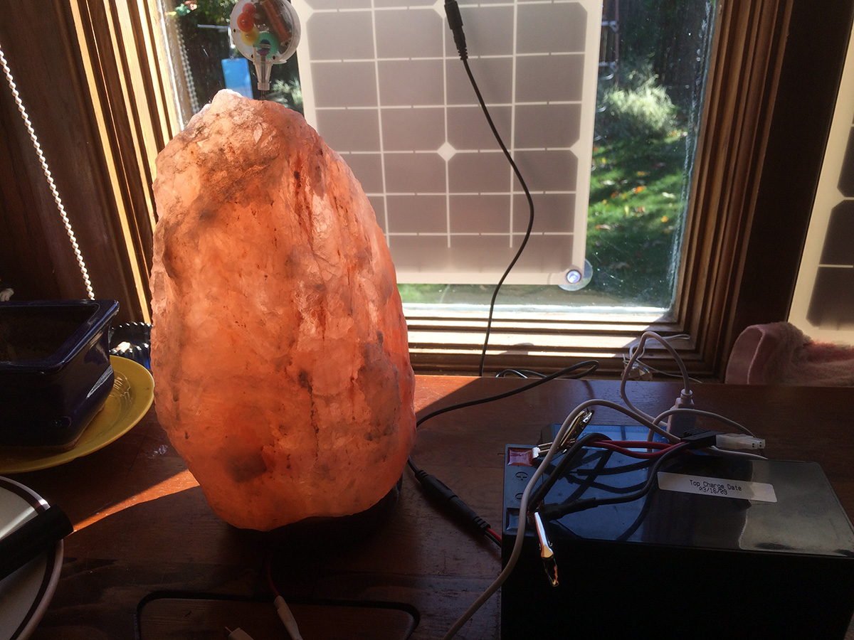 my father told me earlier he'd brought home one of the himalayan salt lamps and put it in the sun room illuminated with some solar-powered led's. in the grow room i refilled the watering bucket with fresh rain water, making sure to keep the cover on so the UV doesn't kill the beneficial Bti bacteria. i finally left by 2:30pm.