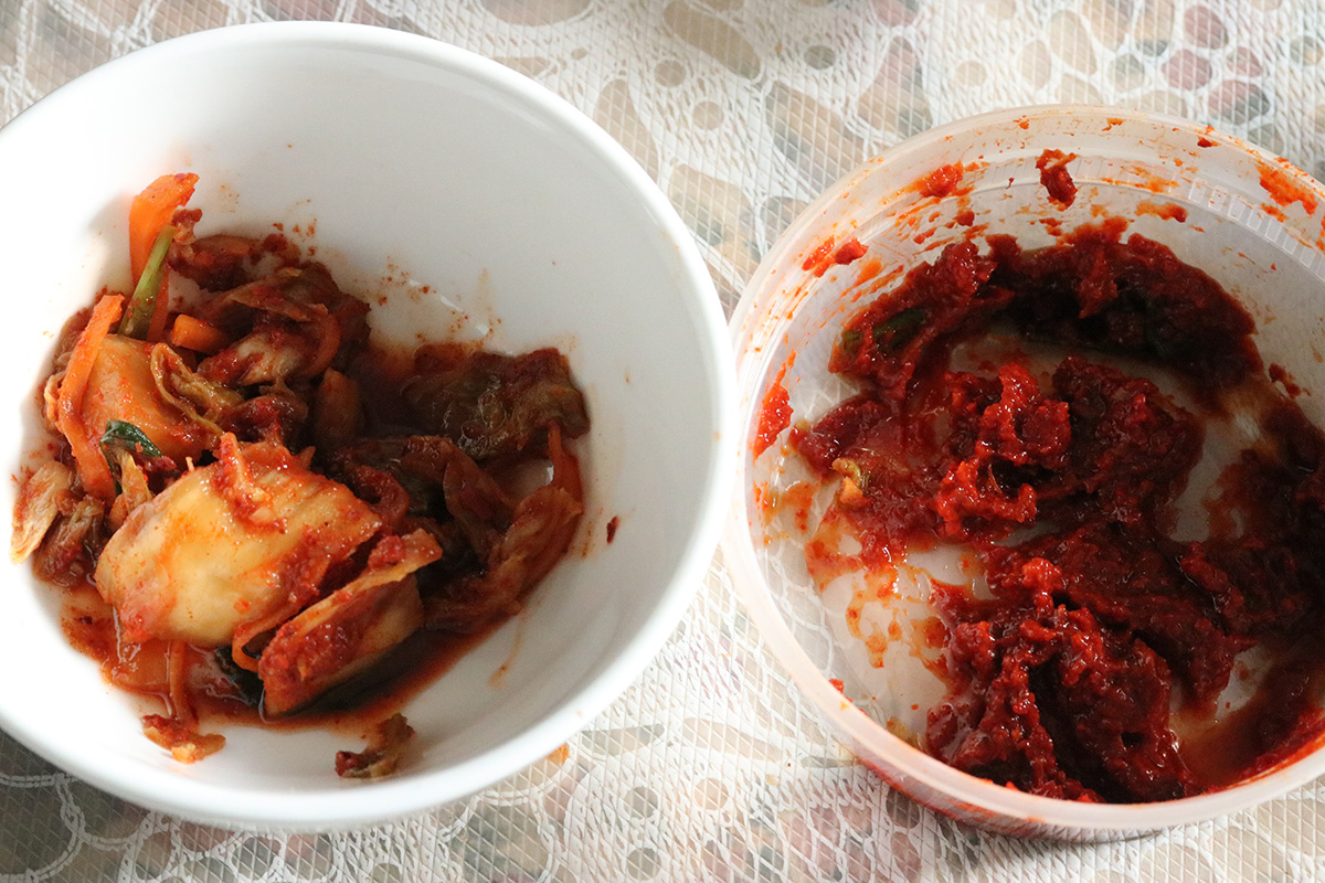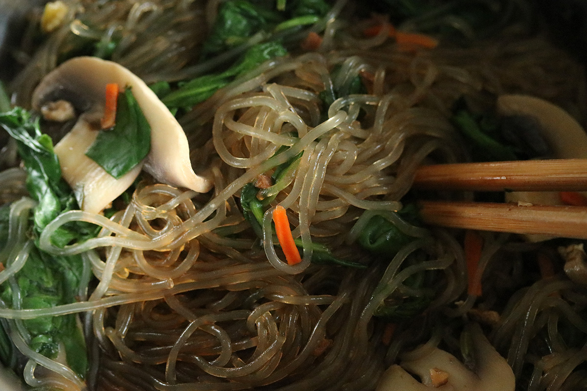 we went back inside where my mother made some korean glass noodles for lunch. i also brought out my own homemade kimchi, as well as EJ's scallion kimchi. without a doubt, her kimchi is better based on the strength of her kimchi paste, which has a stronger flavor. my kimchi, it was too sweet, not enough salt, which was the thing my mother complained about the most. i think it still has possibilities, but needs to be placed outside so it can ferment some more, bringing out the sour taste. right now it just tastes some sweet cabbage with a spicy aftertaste.