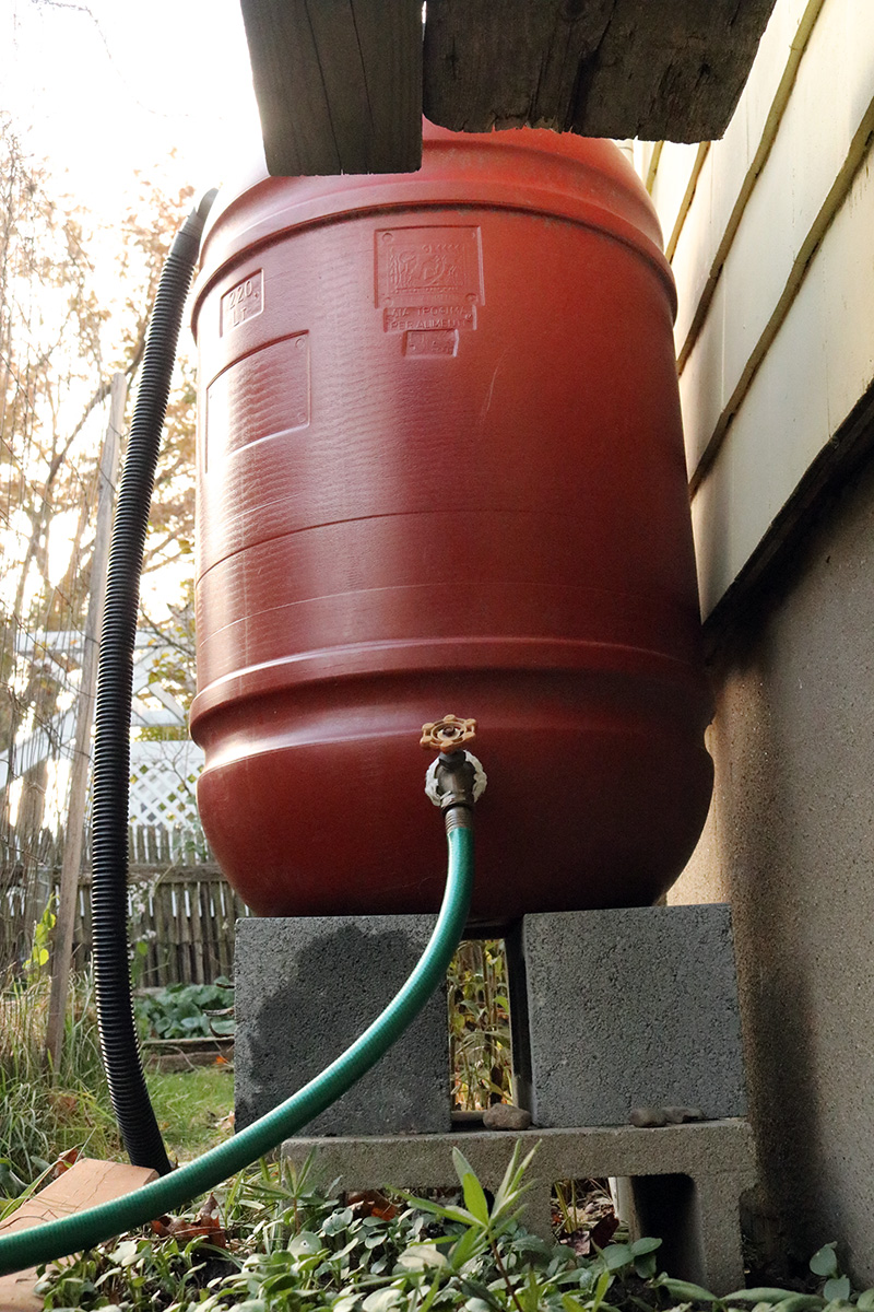 we continued draining the rain barrels. my father had already drained two of the barrels last weekend (closest to the dryer exhaust pipe). today he drained the two red barrels on either side of the house. after that we still have 3 more barrels to empty, but we'll make quick work of them because they're connected to the pump so we can quickly empty the barrels by simply pumping the water. it was kind of sad seeing the precious rain water emptying onto the lawn, but there was no way we can keep the barrels full during the winter as the water will freeze so we can't use it anyway. and freeze they will, as the forecasted temperature for tuesday night will be 18°F. we'll hook up the rain barrels again come spring; it'll be interesting to see how much water we can save by capturing and using the rain for the whole season, not just half like we did this year.
