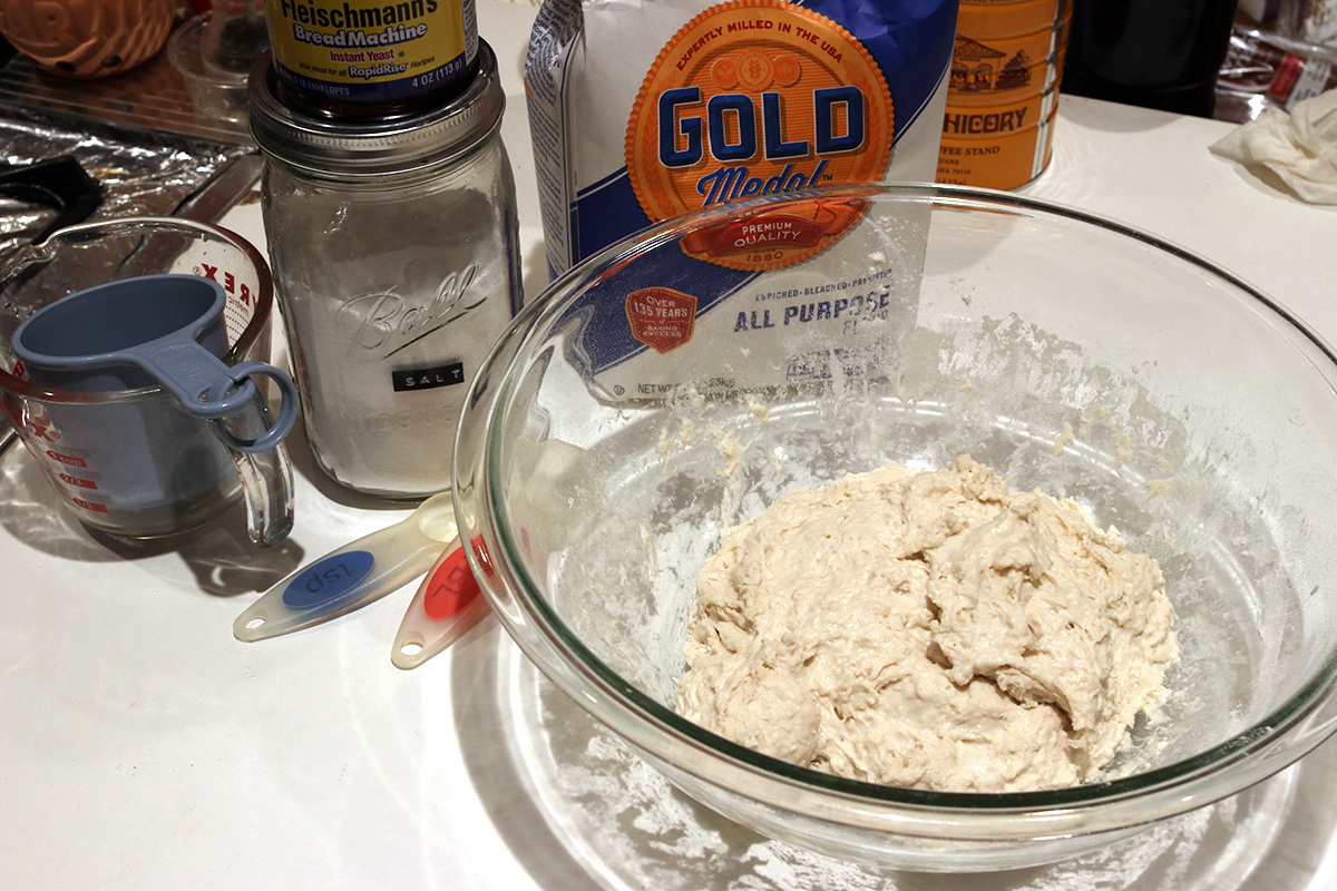 3 cups flour 1/2 tsp yeast 3/4 tbsp kosher salt 1-1/2 cups warm water |