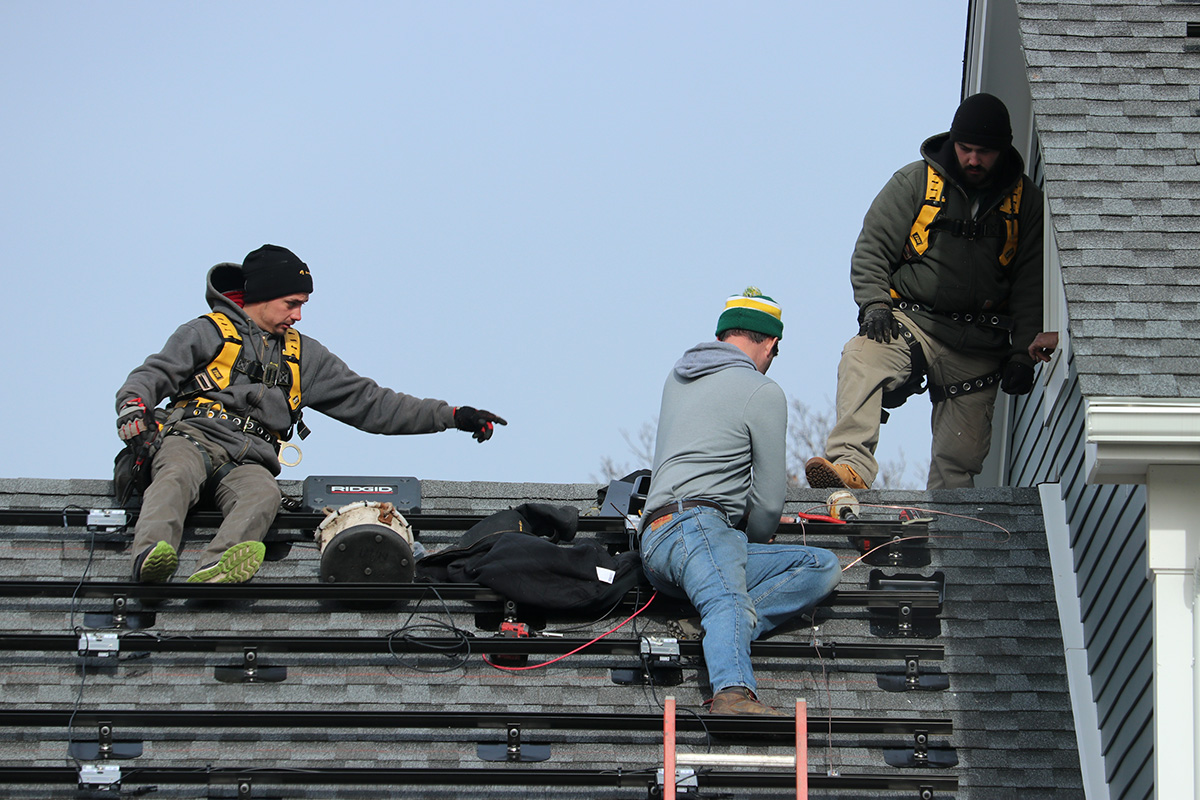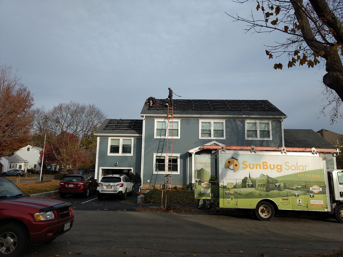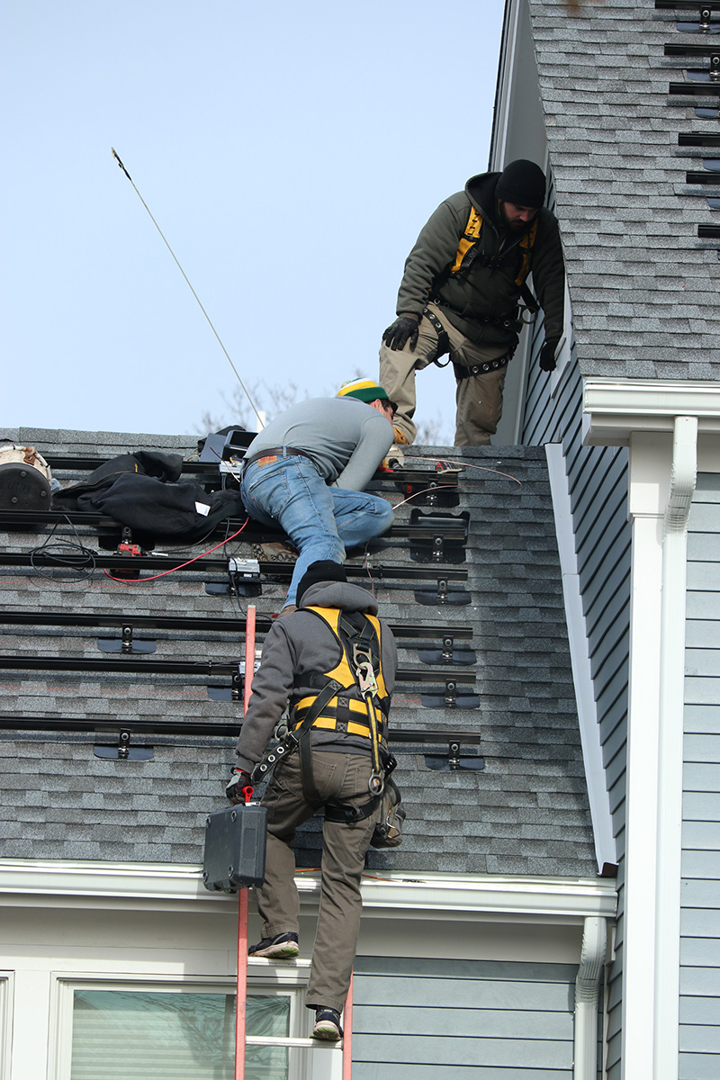 throughout the day i'd check the webcam stream, every time a few additional panels were added. unlike when we had our install, everything seemed to operating like clockwork. in the afternoon, after they finished putting up all 34 panels, the town inspector showed up to give them the sign off. the only thing i don't know is what type of panels. i was going to ask one of the contractors, but when i left the house earlier they seemed to have disappeared on their lunch break.