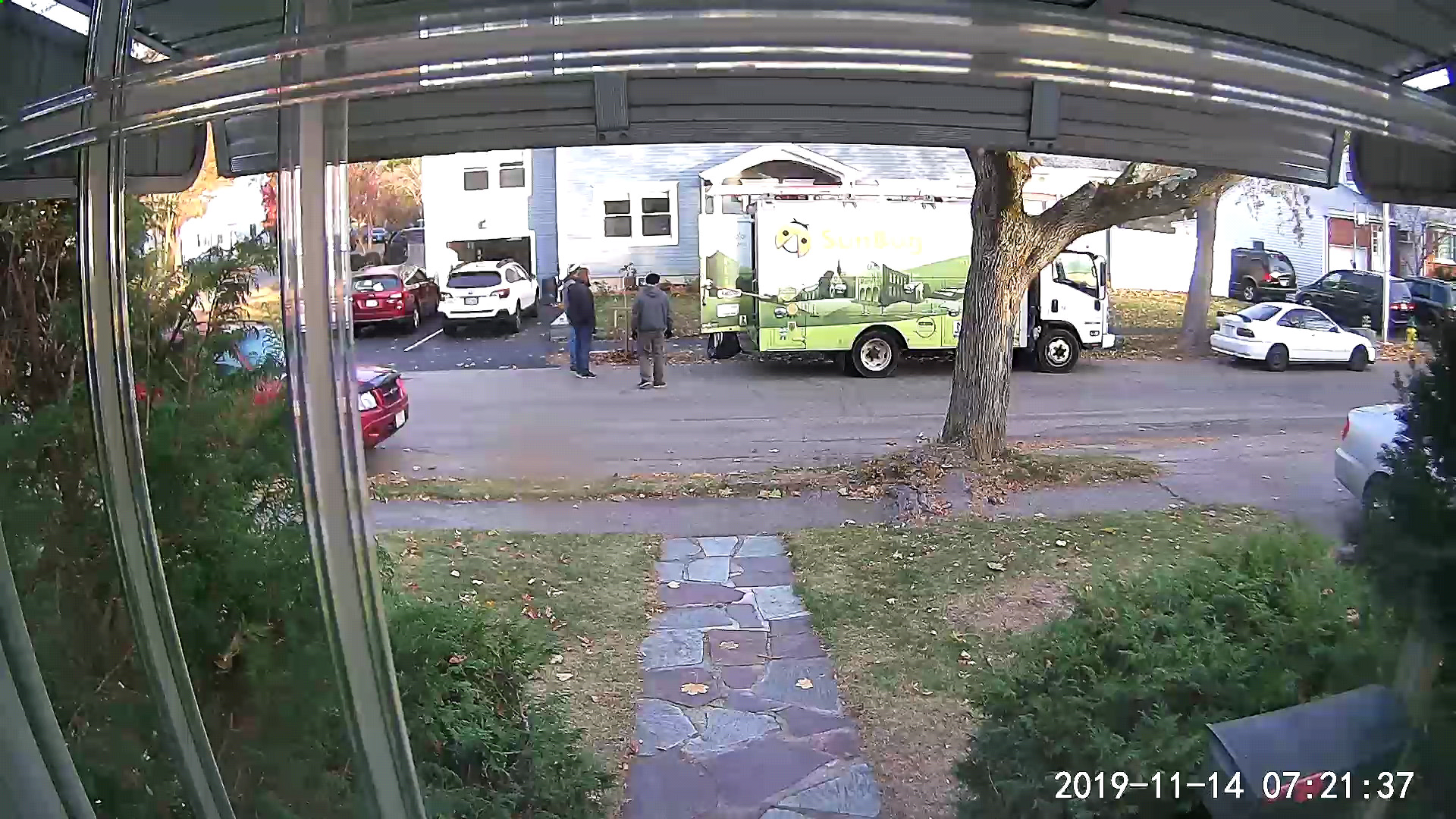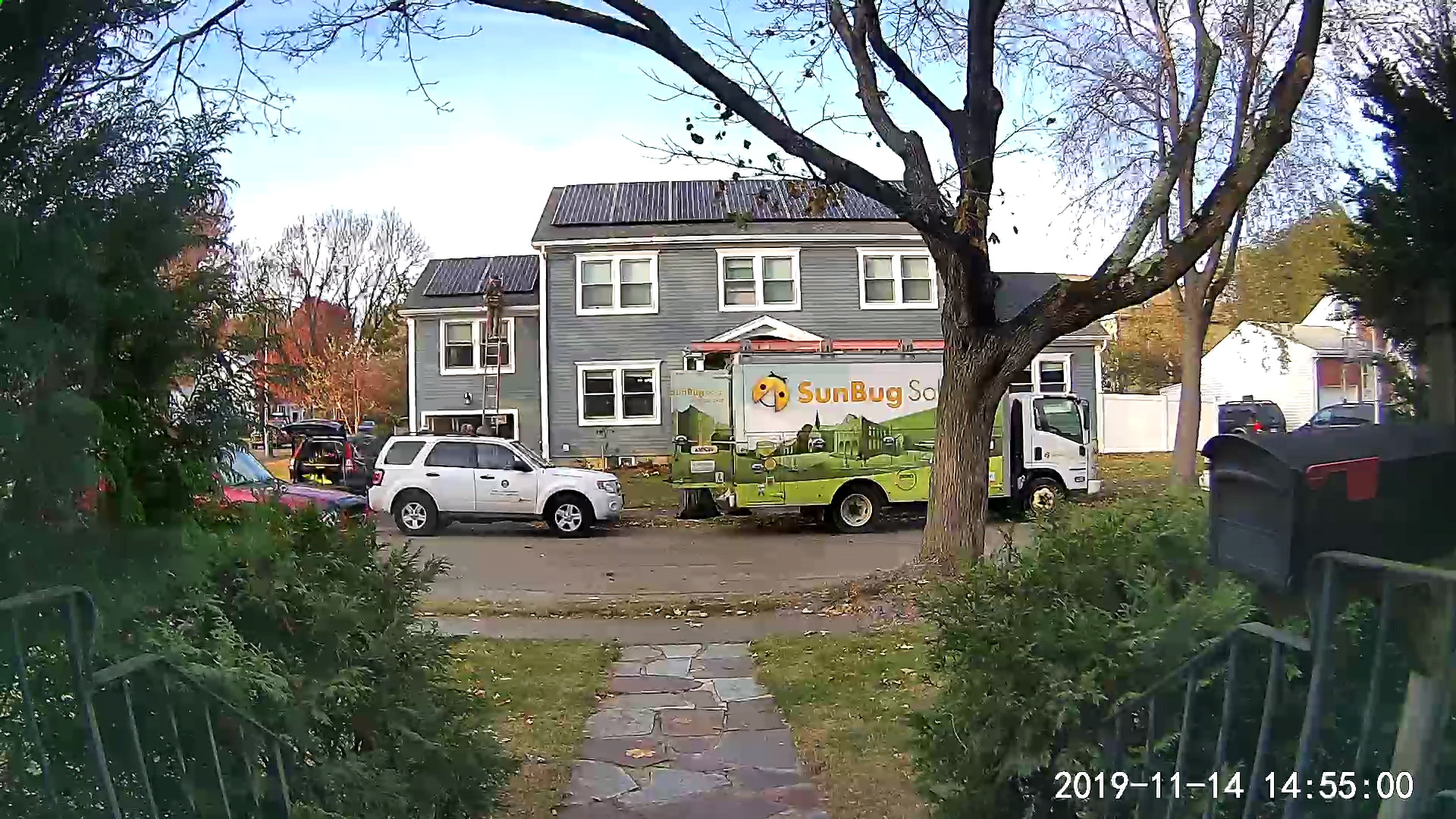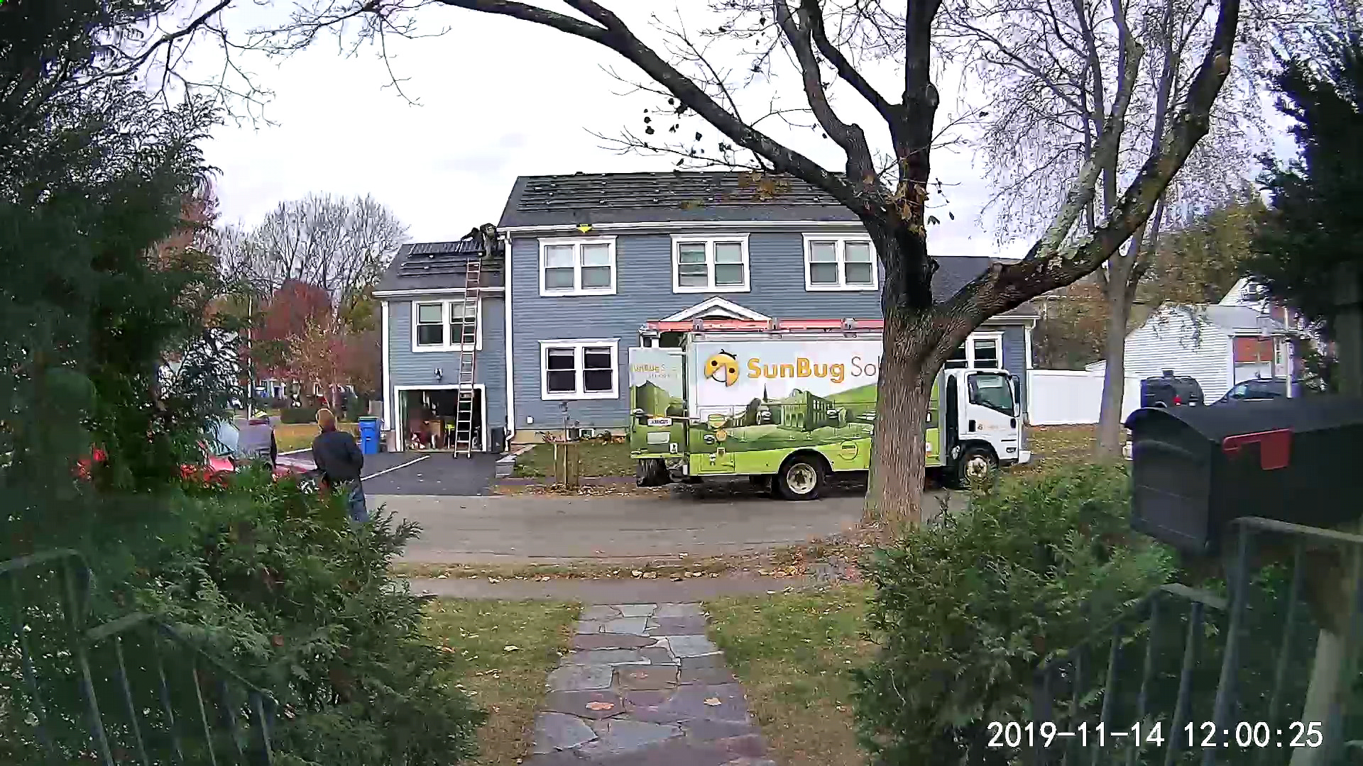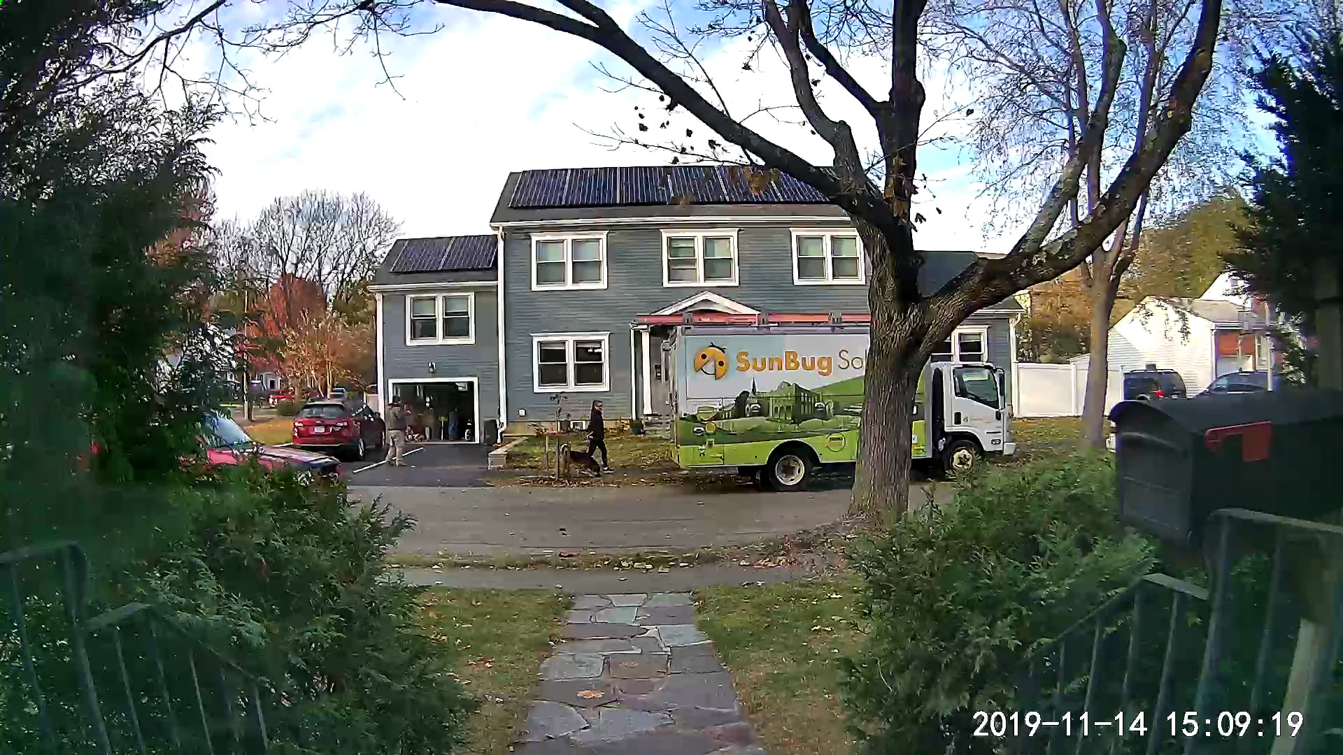 around noontime i casually took a peek at the webcam stream to see the solar contractors' progress, and was shocked to see they were already putting up solar panels. but how? i called my father to let him know what was happening. he said mostly likely the panels were already there, just in the backyard (where i couldn't see it) instead of in front of the house. i quickly remotely set up a time lapse video, 3 seconds a frame (3 seconds is the lowest setting on the wyzecam). it's actually kind of ironic, the best view of our neighbor's new solar panels is actually from our house. his roof is high enough that he won't ever really get a good look at his panels, at least not as good a view as us.