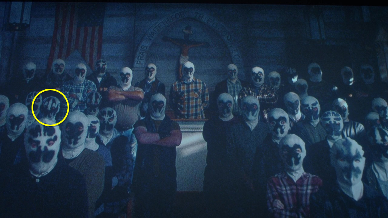 i've been watching the HBO watchmen series and i think i found an easter egg nobody seems to be talking about yet. in the scene where all the masked seventh kavalry members are in the church, you can spot one particular masked individual who turns out to be the big bad as revealed in episode 5.