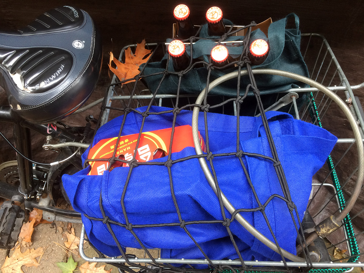 back at home, after unloading all the beers, i rode to market basket to pick up some last minute items. it was starting to get crazy but not yet at insanity level. i got some more drinks - a gallon of apple cider (non-alcoholic) and a 12-pack of moxie soda for anyone who prefers a sweet drink. i was also supposed to get some mussels but the ones they had didn't look fresh and the shells were tiny, so i decided to check out star market instead.
