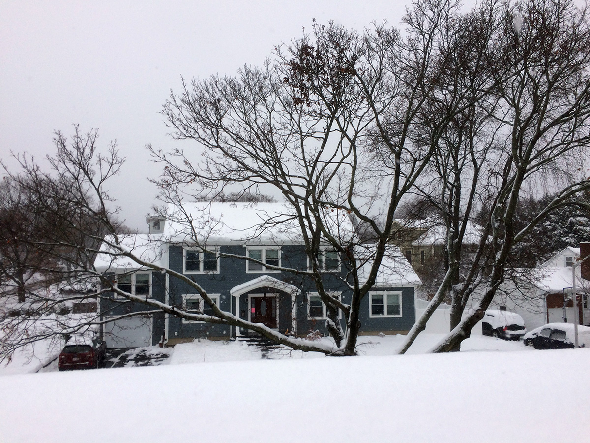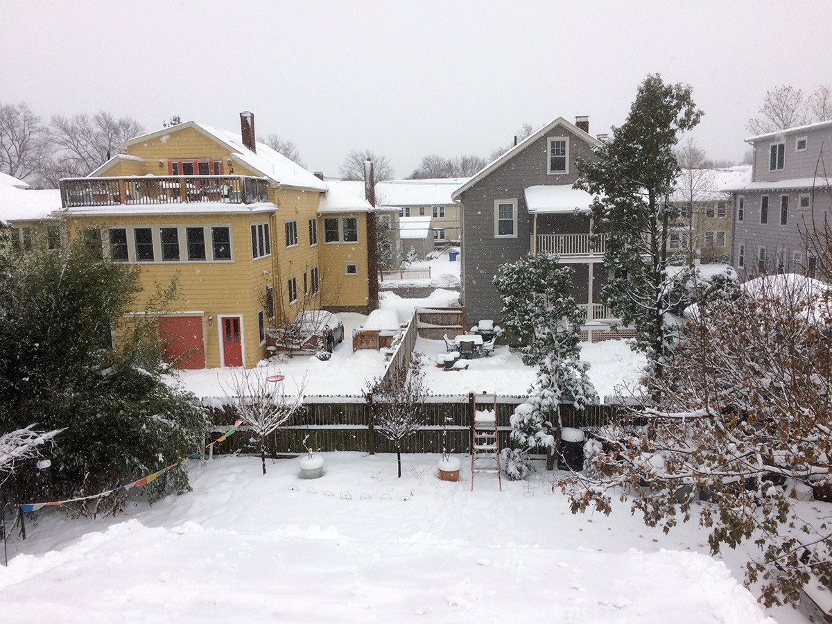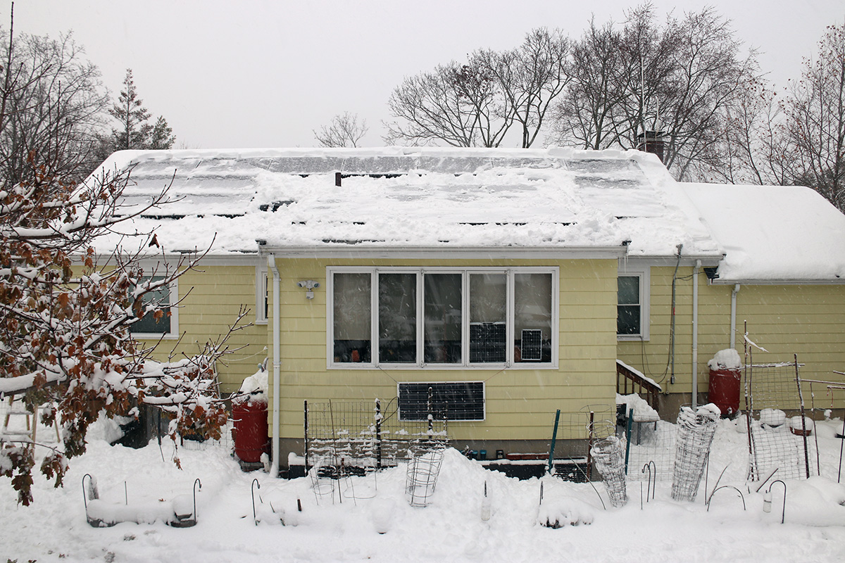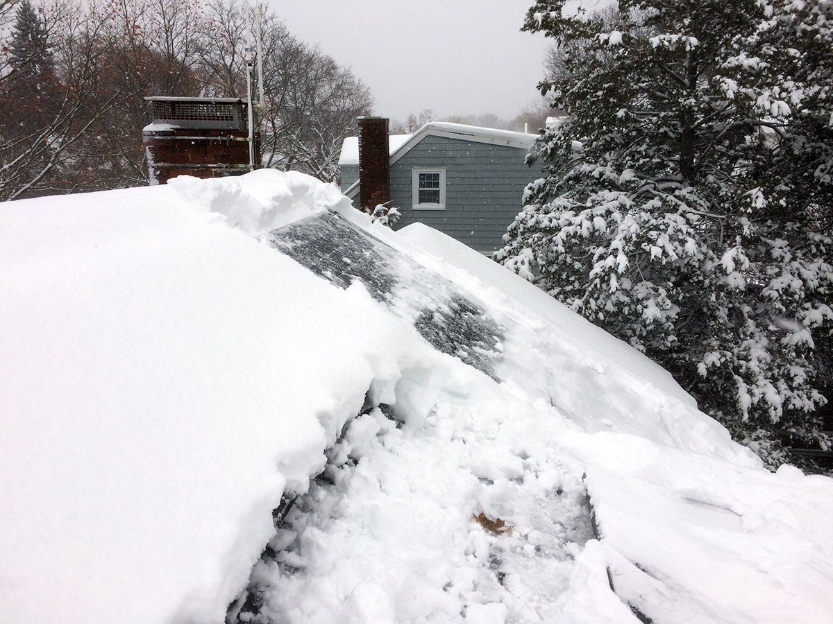 i was happy to see the neighbor's solar panels completely covered in snow. they might have more panels, they might have a more angled roof, they might have the better sun exposure, but at least in this one case we're better than them: our roof is low enough that we can clean the snow off of our solar panels instead of waiting for mother nature to slowly melt everything.
