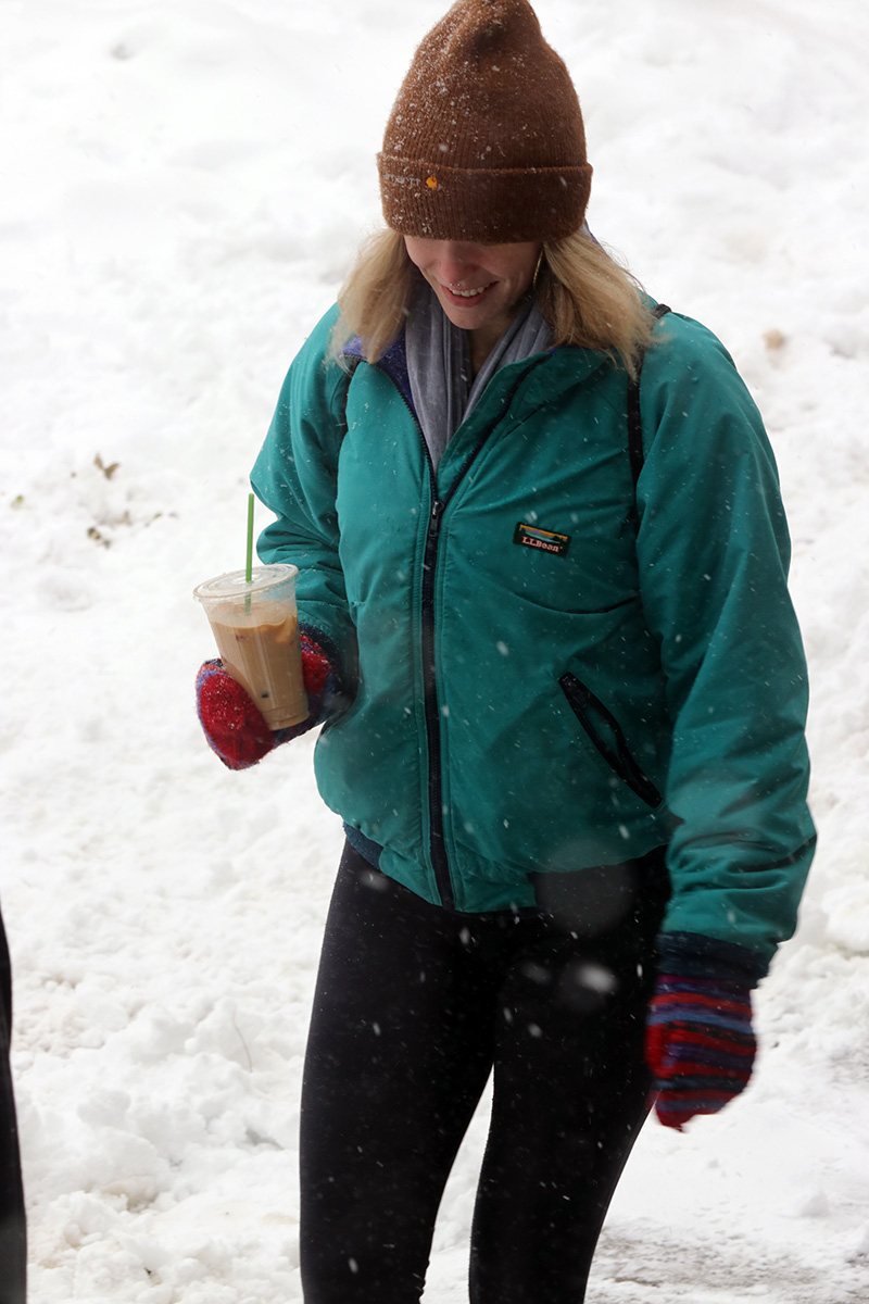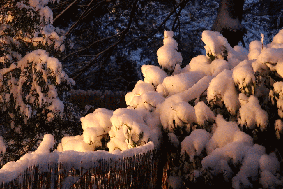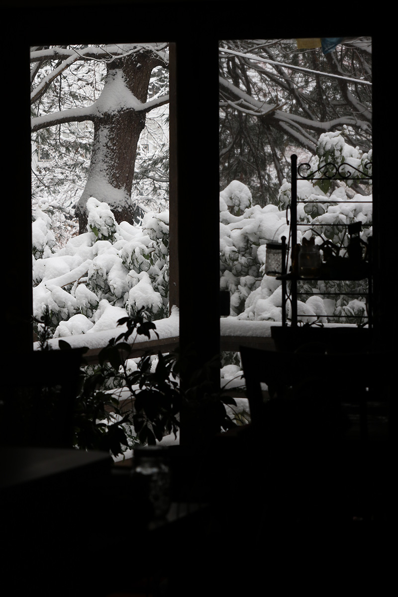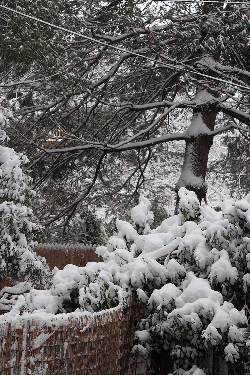 it was still snowing but light enough that nothing would stick, or so i thought. the landscape was pretty, with trees covered in snow, but i could only partially appreciate its beauty, as i was thinking more about the clean-up and how soaked and wet i'd be afterwards, nothing something i was looking forward to.