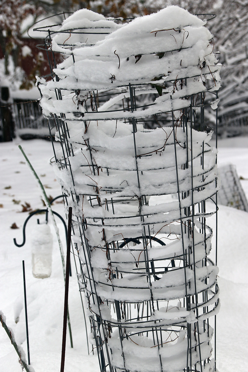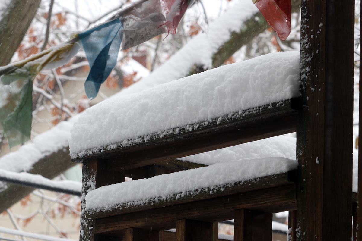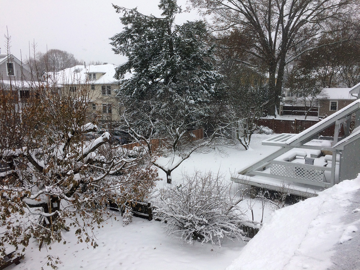 it was still snowing but light enough that nothing would stick, or so i thought. the landscape was pretty, with trees covered in snow, but i could only partially appreciate its beauty, as i was thinking more about the clean-up and how soaked and wet i'd be afterwards, nothing something i was looking forward to.