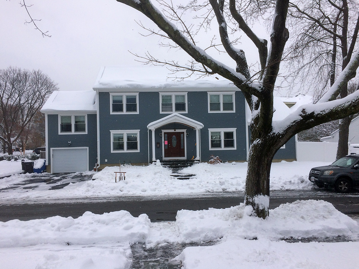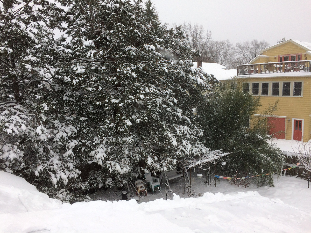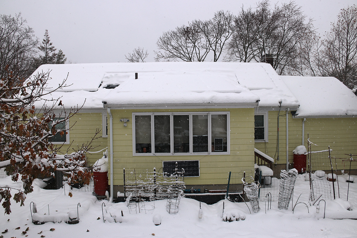 then i moved to the right (east) of the house. there are only three solar panels on that side which made easy work, but i also had to clear the snow off of the steps afterwards from the mounds of falling snow.