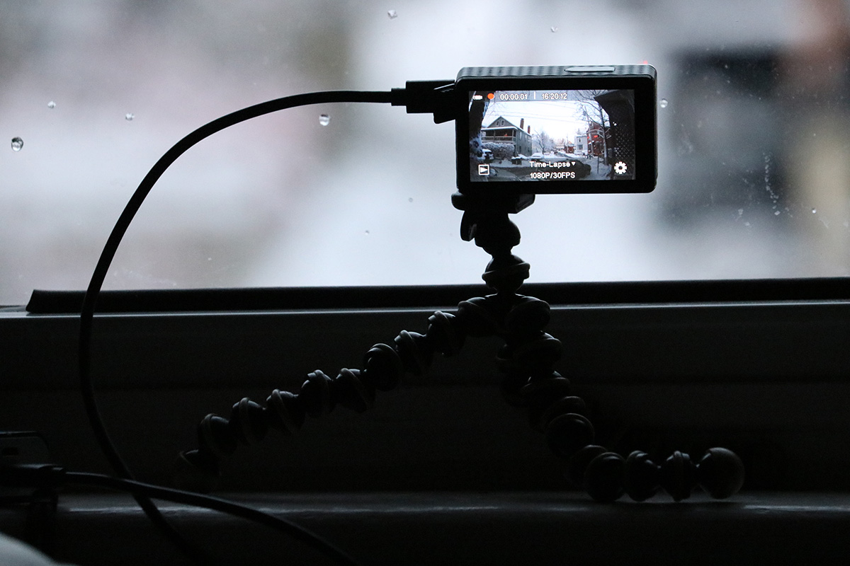 i set up the EX7000 pro to take another time lapse out my living room window, hoping to capture the sunset. i was happy to see it worked with the external battery.