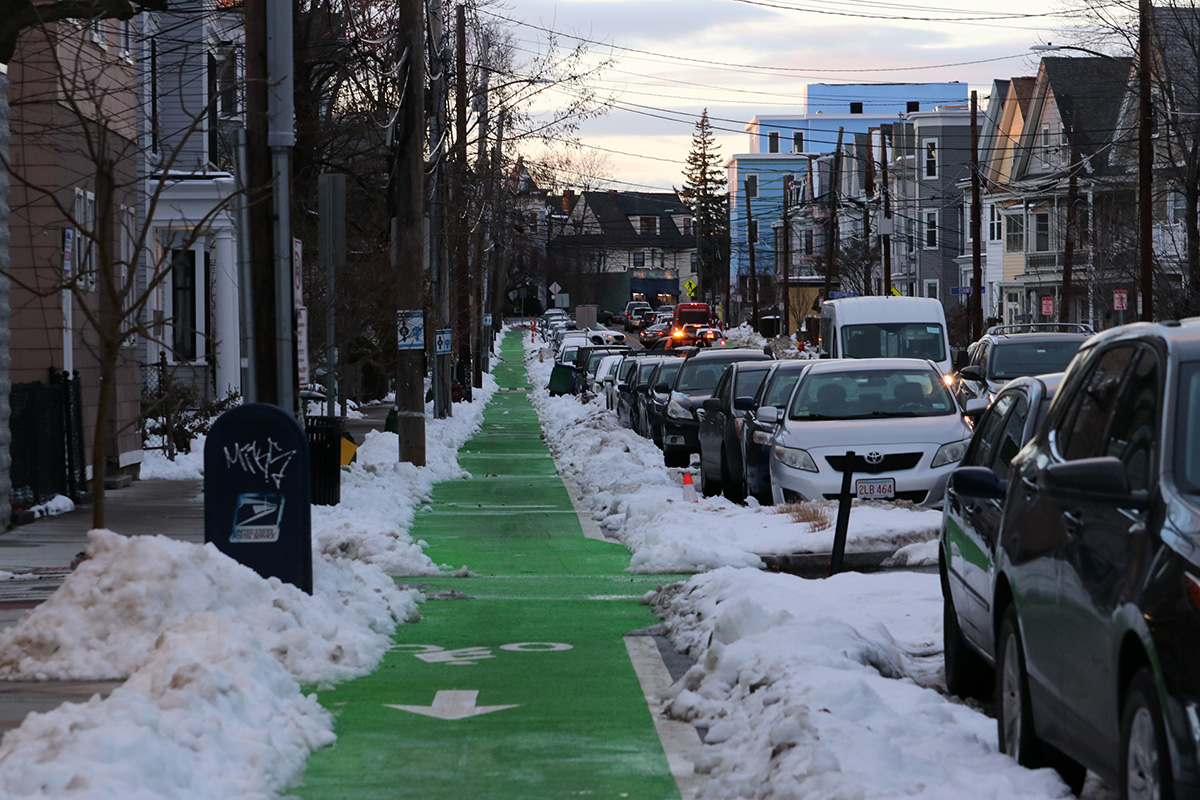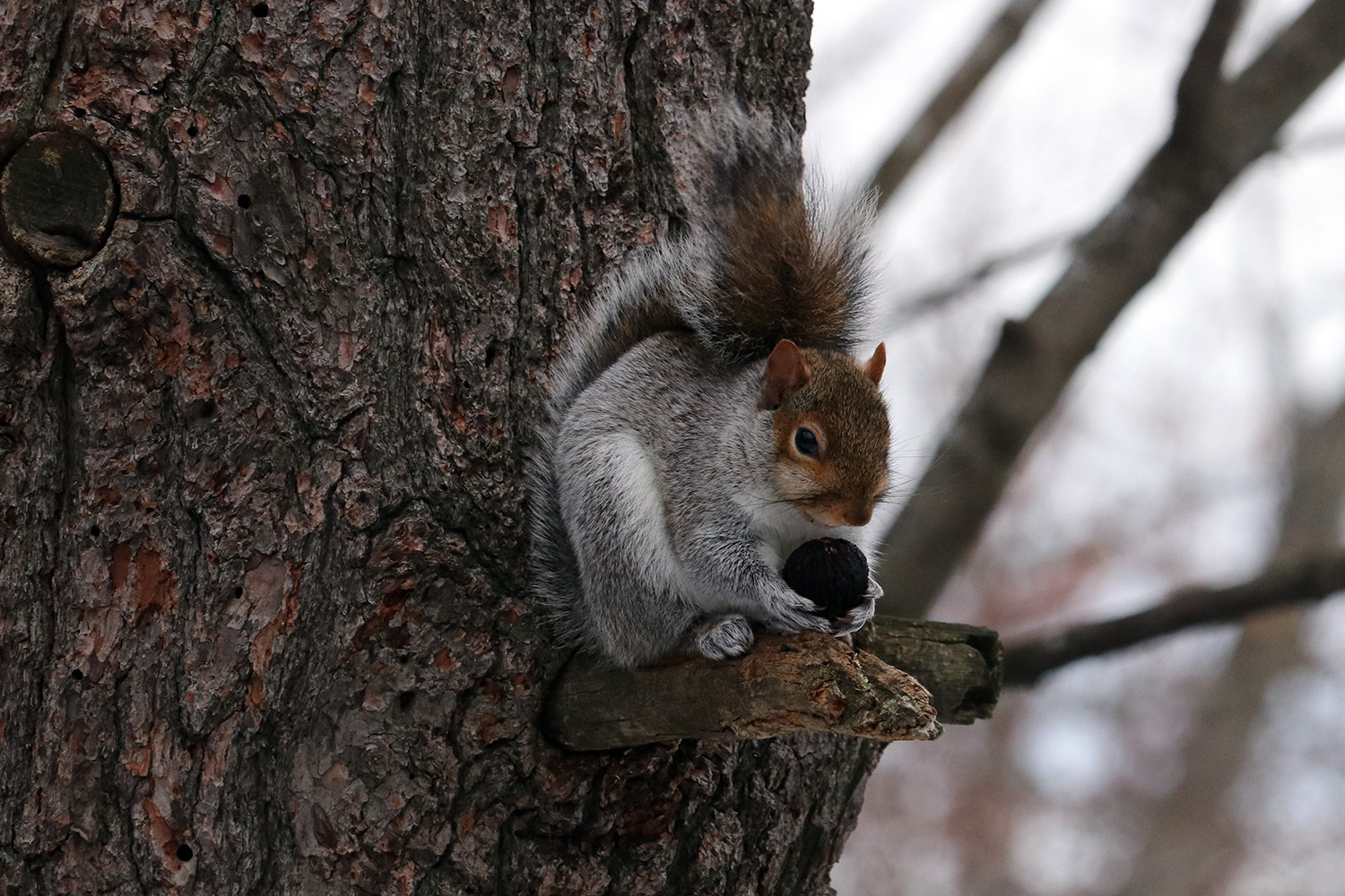 afterwards i rode up to huron avenue to go home. along the way, i saw a few kids sledding down the shallow hill (with what little snow remained). i saw a goldfinch up in a tree, as well as a squirrel sitting on a branch lazily eating an acorn.