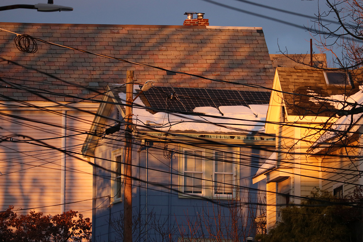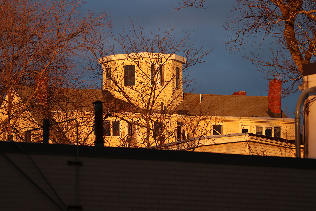the dollar store was crowded. not sure if it was because new traffic from the opened underpass, or maybe it's because a lot of kids hang out their afterschool. i grabbed some gummy snacks and a pair of gloves. returning home, the sun was just about to set, the landscape was bathed in this golden light. luckily i had my camera and took a few shots. in the sky i caught a cooper's hawk circling around (i think it was a pair, i only photographed one). around the neighborhood i spotted rooftop solar panels, most of them were snow covered on the bottom row of panels.