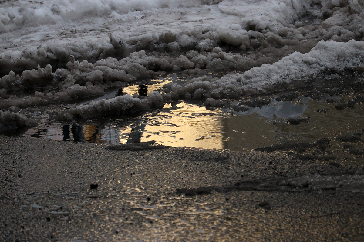 it was already getting cloudy when i left my house, but now completely overcast by the time i left the cafe for fresh pond. from outside it looked like it'd rained, but that was just the slowly melting snow piles.