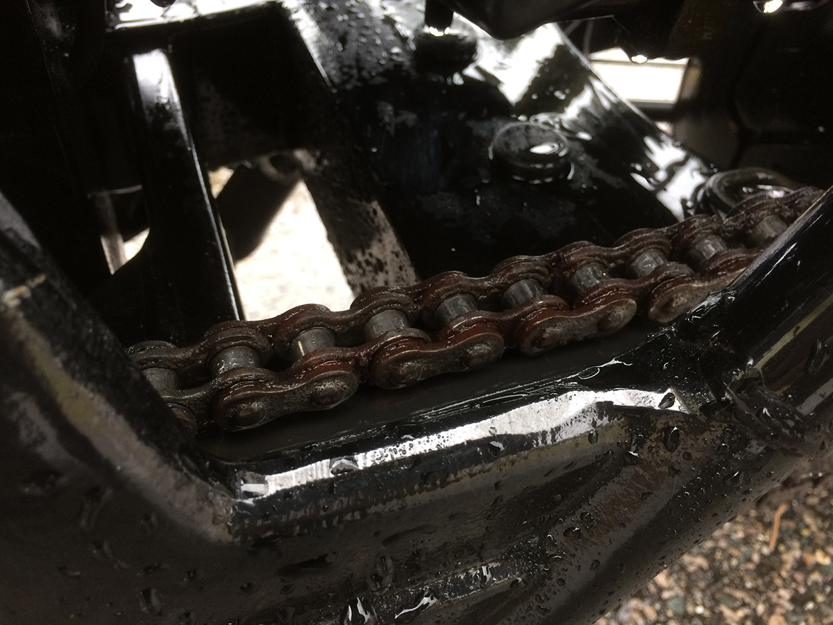 i washed the motorcycle in the driveway, first soaping it up with some sudsy hot water, rinsing everything off with the hose, finally drying with some used rags. i still need to jack up the bike and oil the chains, but that's something i can do at a later date. i put the bike away in the garage and bicycled home.
