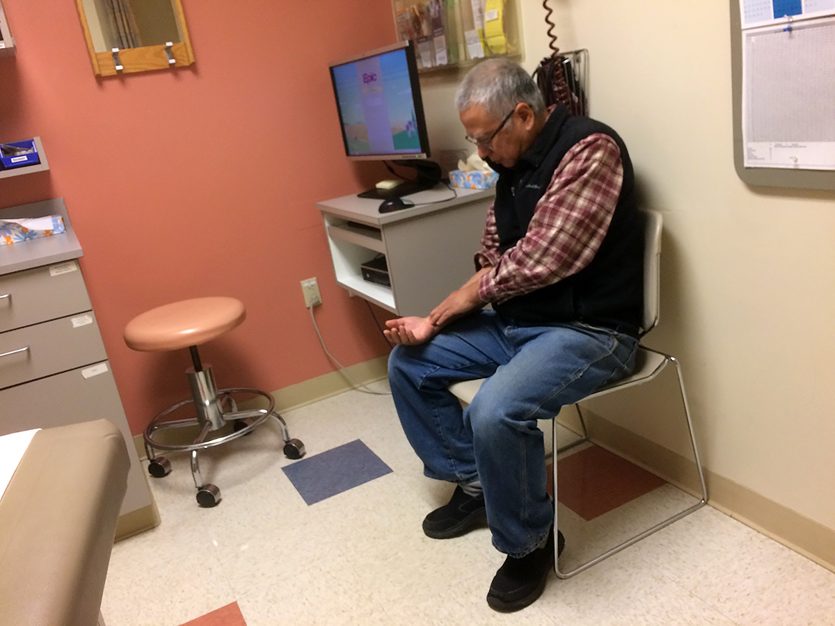 we went to harvard vanguard by inman square. my father drove with one hand, and in hindsight i probably should've taken the wheels under these slippery conditions. i went with him inside the exam room. his doctor felt his hand then sent us downstairs for my father to get an x-ray.