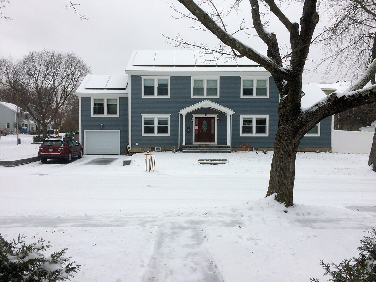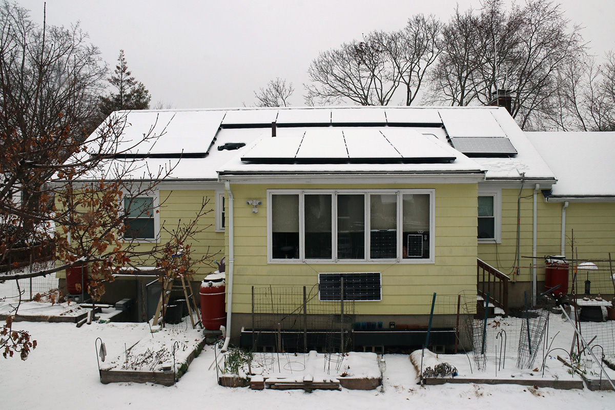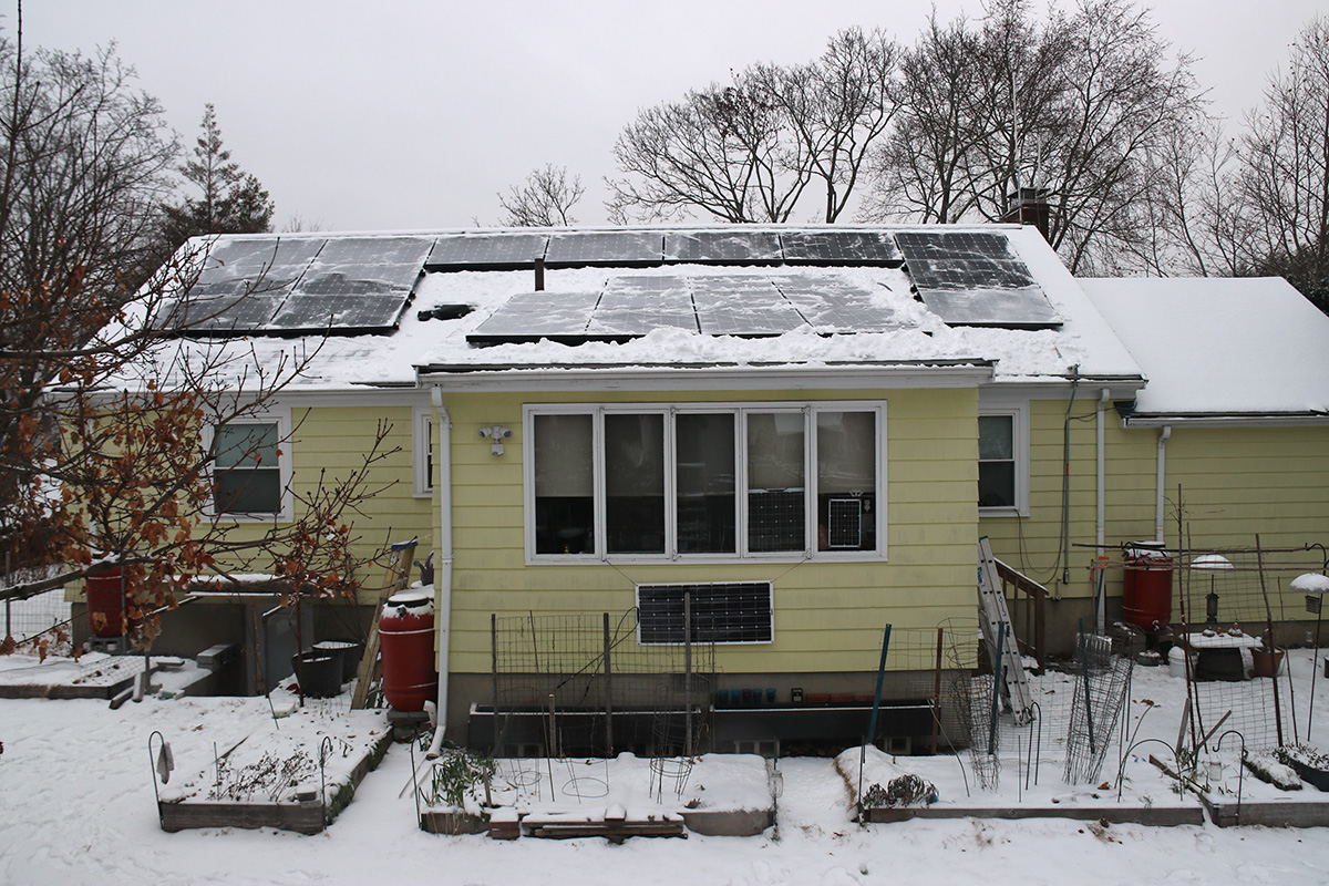 i did the best i could, praying to the gods of solar energy that the panels don't get covered back up from now until the storm ends early tomorrow morning. a layer of clear ice wouldn't be a problem, it'd simply melt; what i don't want is a thin layer of snow, opaque enough that the black panels underneath can't peek through and therefore can't melt the snow. i went to the basement to check on the inverter, it saw all 24 panels, so everything back to normal. when i arrived at the house i noticed the neighbor's panels were once again completely covered in snow. even though they have 10 more panels than us, i don't think they had better production this month since their panels have been snow covered so often.