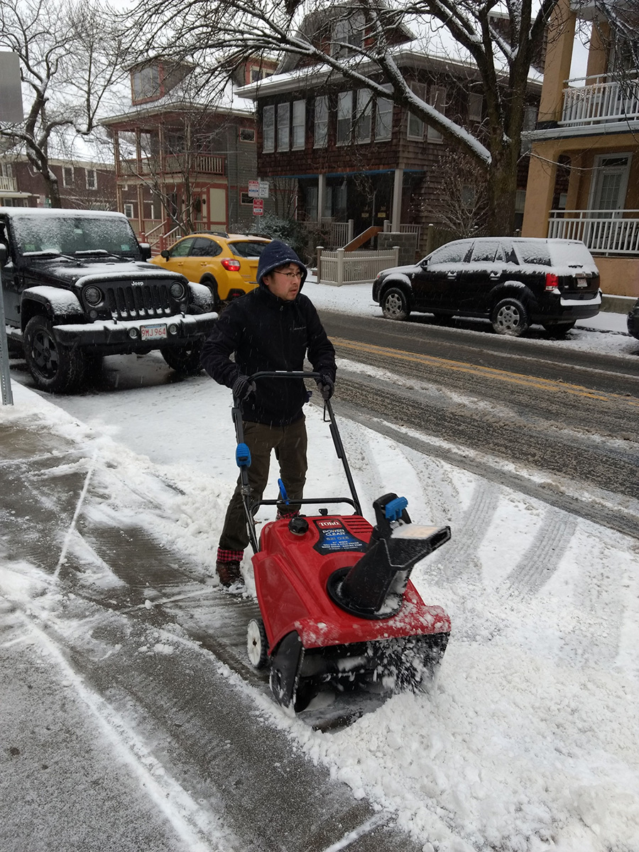 my original plan was to wake up at 7:30am, shovel my own sidewalk, before walking down to the cafe and meeting up with my parents when they arrived at 8:30am. i couldn't get out of bed and snoozed the alarm clock until 8am. from the 9 wyze cams i've stashed at various locations and the few pointing outside, there didn't seem to be a lot of snow yet, as it'd just started snowing around 5am this morning. when i called my mother asking if i should delay going down to the cafe until we got more snow, she said i should come down anyway, to clear what little snow there was.