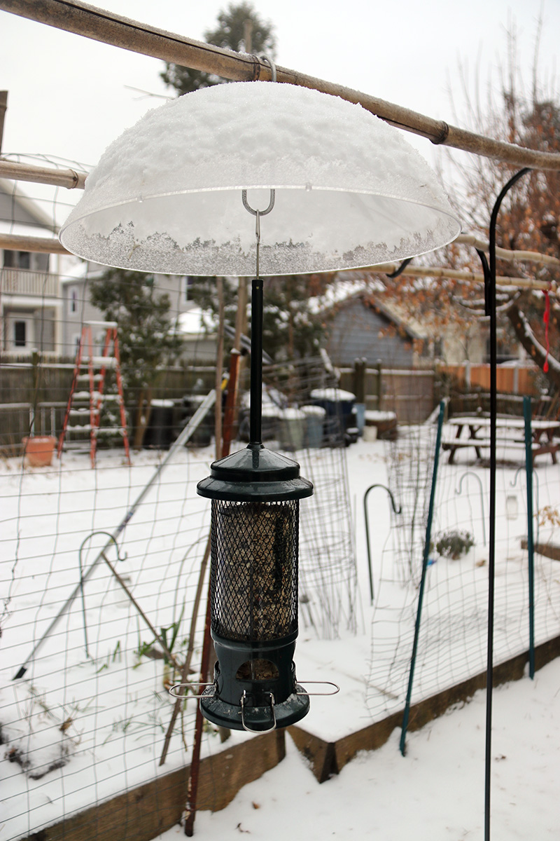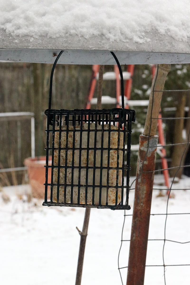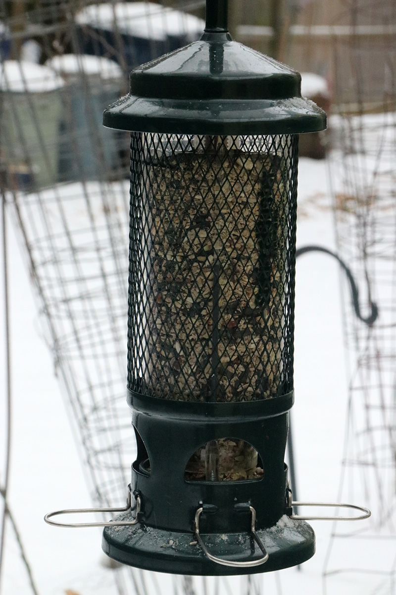 i saw a bluejay fly away from the feeder when i first got to the backyard. i didn't see any birds during the whole time i was clearing snow from the solar panels, but i filled the feeder to capacity yesterday, and i could see the seed level had already gone down a bit, so birds had been feeding on it. i really should set up a wyze cam pointing to the feeder so i could do some birdwatching remotely.
