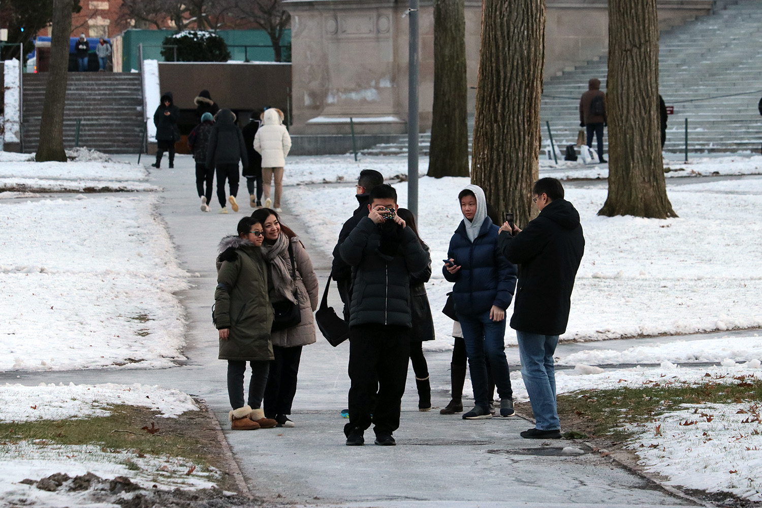 i returned home to drop off the coffee and pills and pick up my camera before heading down to harvard square, my last stop. the neighborhood dog walking woman saw me riding and yelled out, "you'll freeze your nose off!" i was in harvard square to visit the gap store there, looking to see if they had any flannel-lined pants so i can replace the ones i got yesterday. after a fruitless search i asked one of the clerks who told me they only carried those pants online. she said they could accept my returns, but i told her i'd think about it a little more. the pants are very comfortable and fit great, just not long enough for me to roll up the pant legs to show the flannel pattern on the inside.