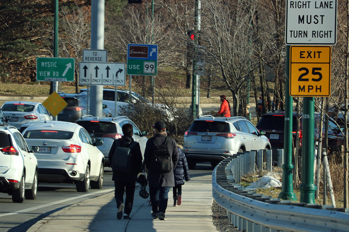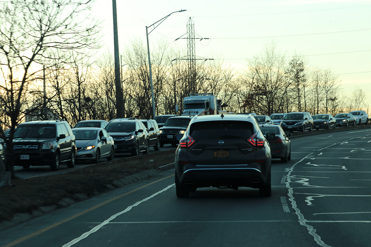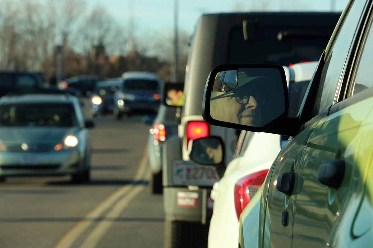 it took us a long time to leave the gateway center, as there was a bottleneck at the entrance/exit, and every possible merge point in the parking lot was a source of congestion. in all it took us 20 minutes just to get out of there.