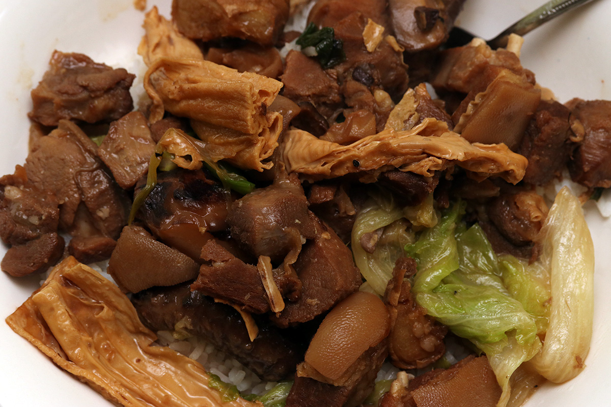 i heated up the rest of the chinese leftovers for dinner: microwaved the rice and warmed up the lamb chunks over the stove. there was still a lot of food, i probably could've saved half for tomorrow.