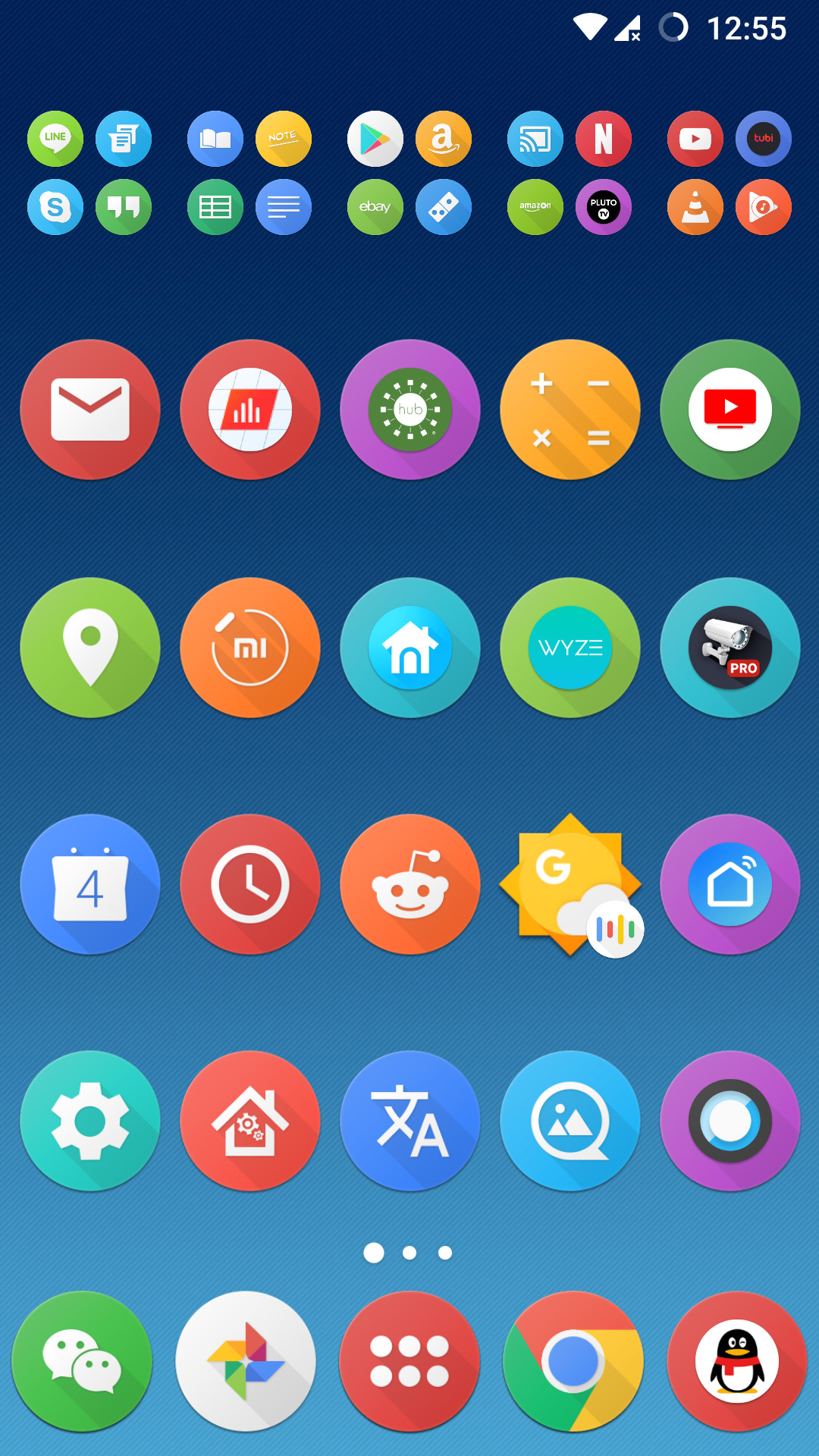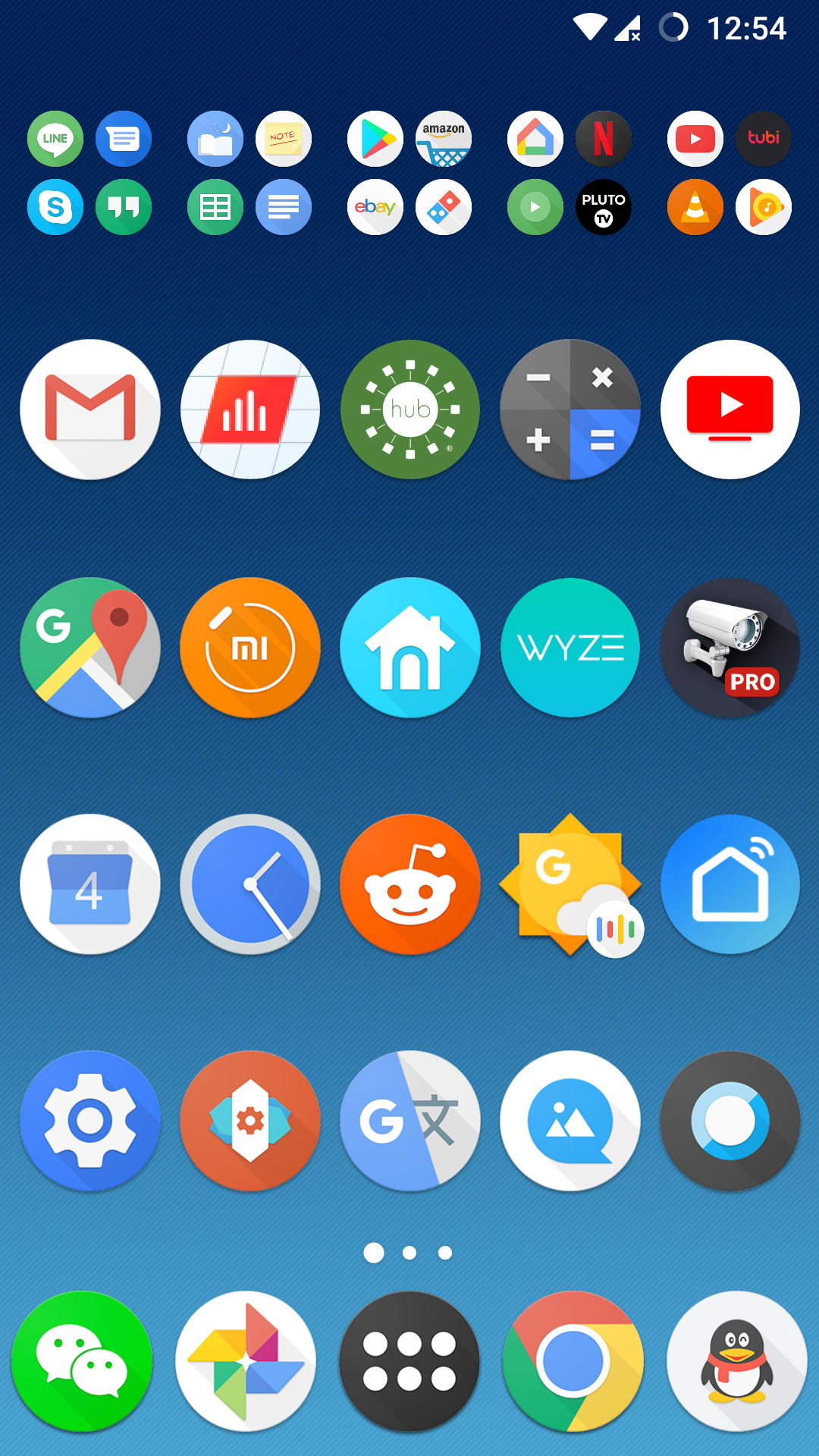 i'm still searching for the right icon pack for my android phone. PIXXO UI looks good when i remove the custom icons and turn off autogenerate missing icons. i came across circulus UI, which is the closet match to my old icon pack, so much so i wonder if it wasn't be the same designer, just updated for the latest system; i don't like the maps and nove launcher settings icons, it reminds me a lot of rondo icon pack - white silhouette on colored backgrounds - except a few of its icons does use colors (google photos and chrome); this pack works best with autogen turned off, since there's no control of what colors it uses to generate missing icons. dives icon pack is a simple colorful set with drop shadows, but i don't like some of the choices like for the wechat or qq icons.