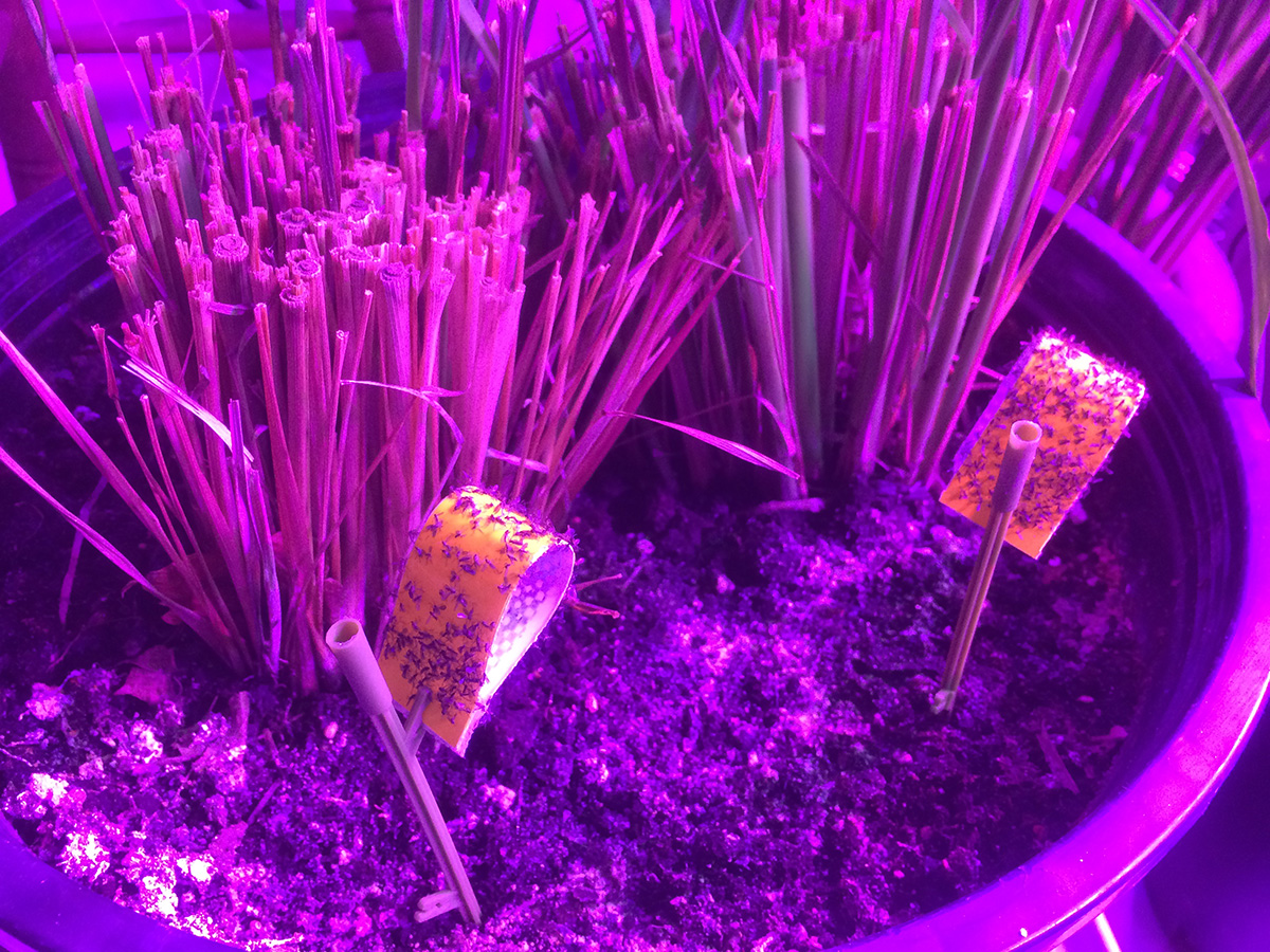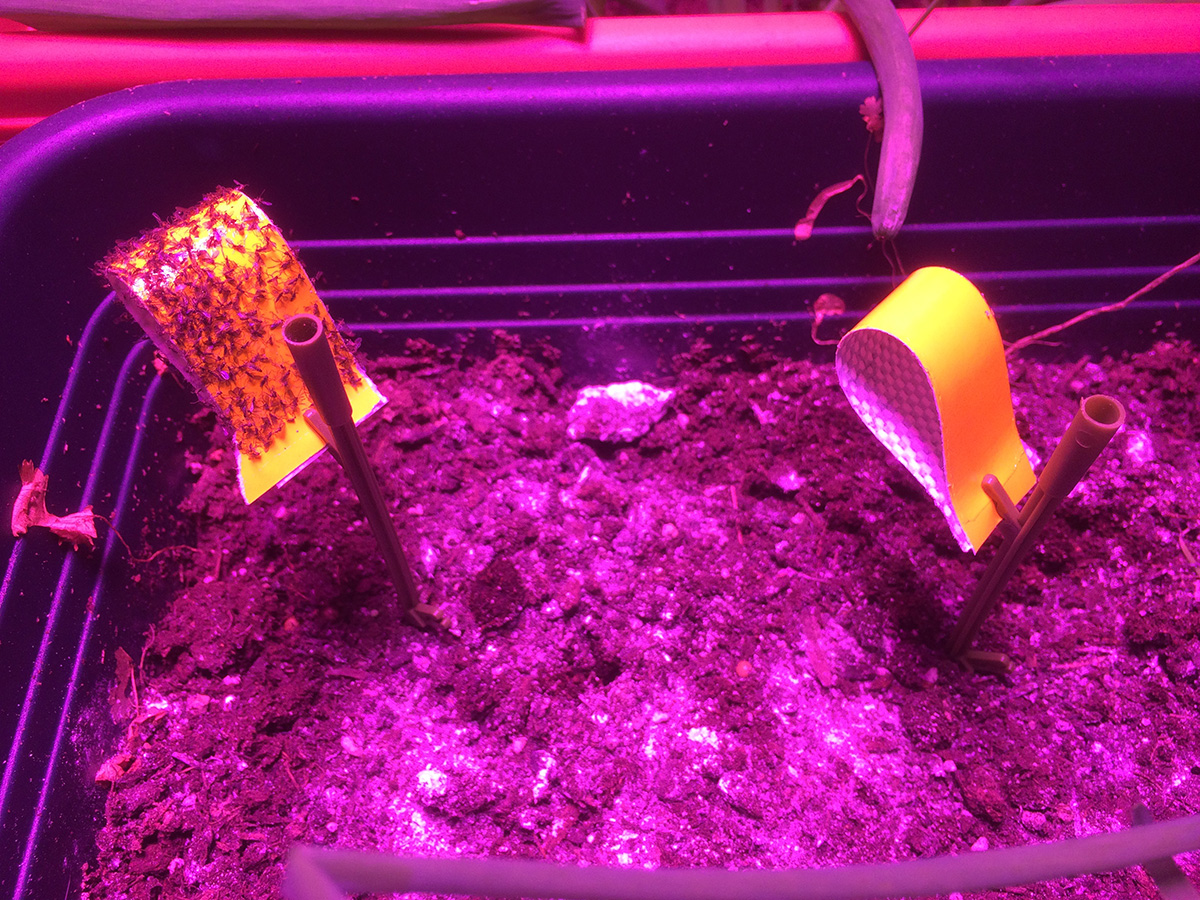 the new yellow sticky traps i'd placed on tuesday had a bunch of fungus gnats on them. not as much as before, but still a good amount. this is a good sign that by placing more traps, i've managed to put a dent in the gnat population. i don't doubt they'll spring right back, but i'm letting the soil dry which will help keep them in check.