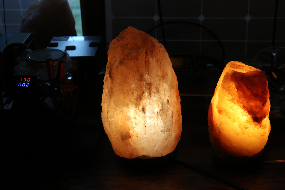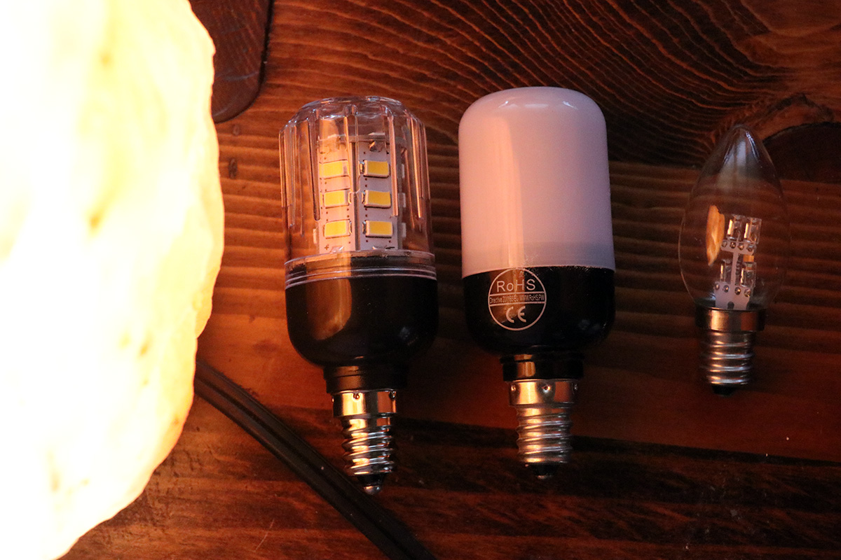 i brought the 7W E12 LED light bulb that came on saturday. even though it's the brighest of all the E12 bulbs that i bought on ebay, it works very well in one of the salt lamps that have a very thick wall. to test all the bulbs i'd need to remove the lamp housings from all the salt lamps and it'd be too much hassle.
