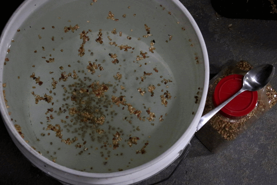 it's really not that hard to completely eradicate fungus gnats. the trick is to break the cycle. catching the flying adults is no use because they will still continue to lay eggs, which will in turn produce more adults (i heard a single female gnat can lay a few hundred eggs). the larval worms that live and feed in the soil have to be destroyed as well. that's where Bti comes in. we've been using it for months but it didn't seem to be working. at first i thought maybe it's because my father had been adding liquid fertilizer to the water as well, which might be killing the bacteria. then i thought maybe it was the UV led's in our grow lights that was killing off all the beneficial bacteria. but turns out the actual problem was we've been using too little Bti-infused mosquito bit pellets: each time we filled a bucket, i only added a few pellets (around a dozen), because that's only how much i needed to kill mosquitoes in our standing summer pools. but getting Bti into the soil is different, requiring a higher dosage to make a more concentrated water solution.