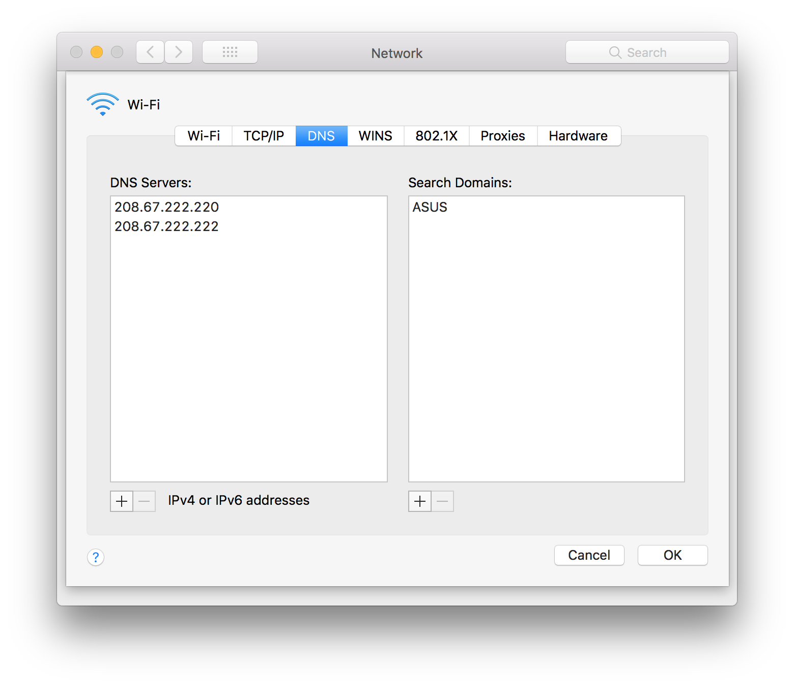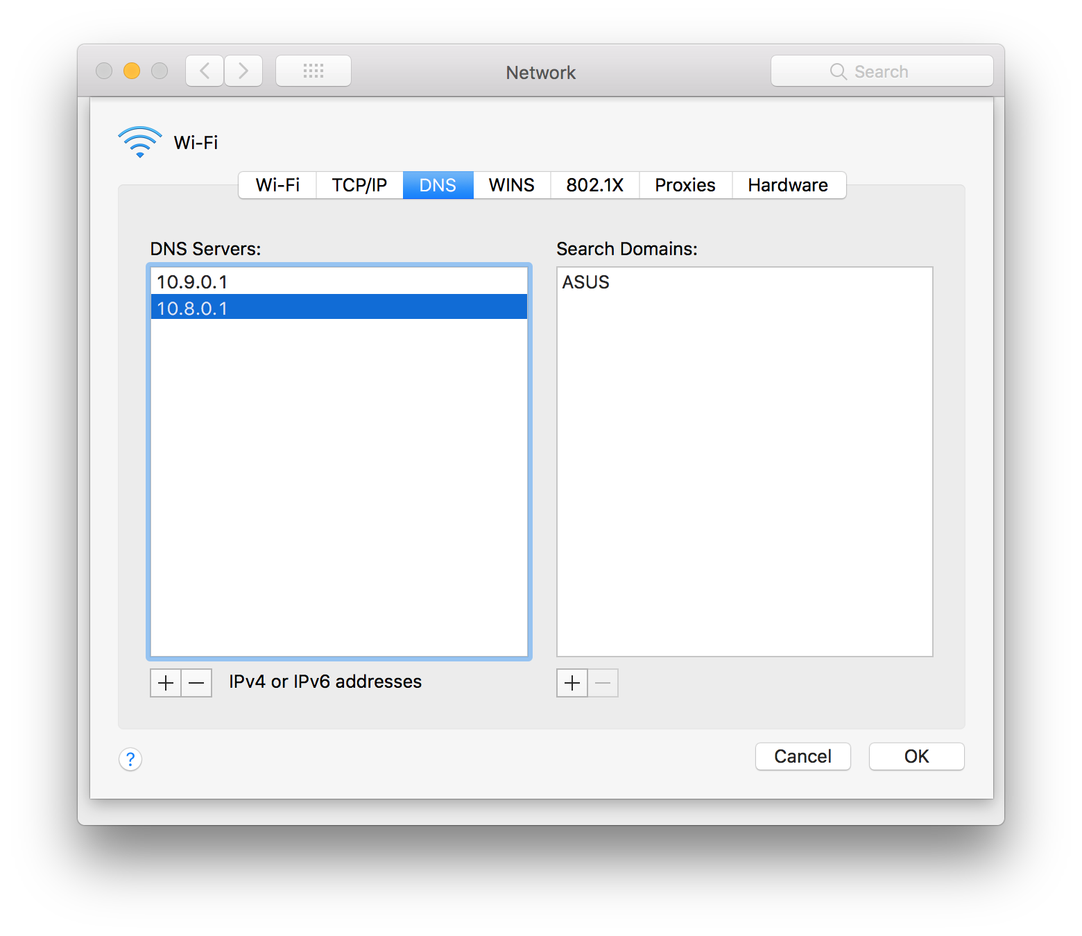 i then came across a 2013 macworld article, "Mac troubleshooting: What to do when you can't connect to the Internet". it listed a number of steps to check, all of which i did, except no.6 "Check your DNS settings". i've played around with the DNS before so it wasn't my first rodeo, primarily to switch from the default DNS to something faster. it showed my DNS as 10.9.0.1 and 10.8.0.1. when i looked them up online, i couldn't find anything about them, so i used the recommended openDNS (cisco) addresses 208.67.222.222 and 208.67.222.220.
