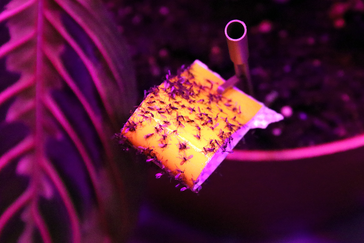 maybe it was just my imagination, but there seemed to be less fungus gnats today, since i put up so many traps the last few times i was there. there were still some flying, but nothing like it was before. it could also be cyclical, until the next wave of gnats emerge from their pupae.