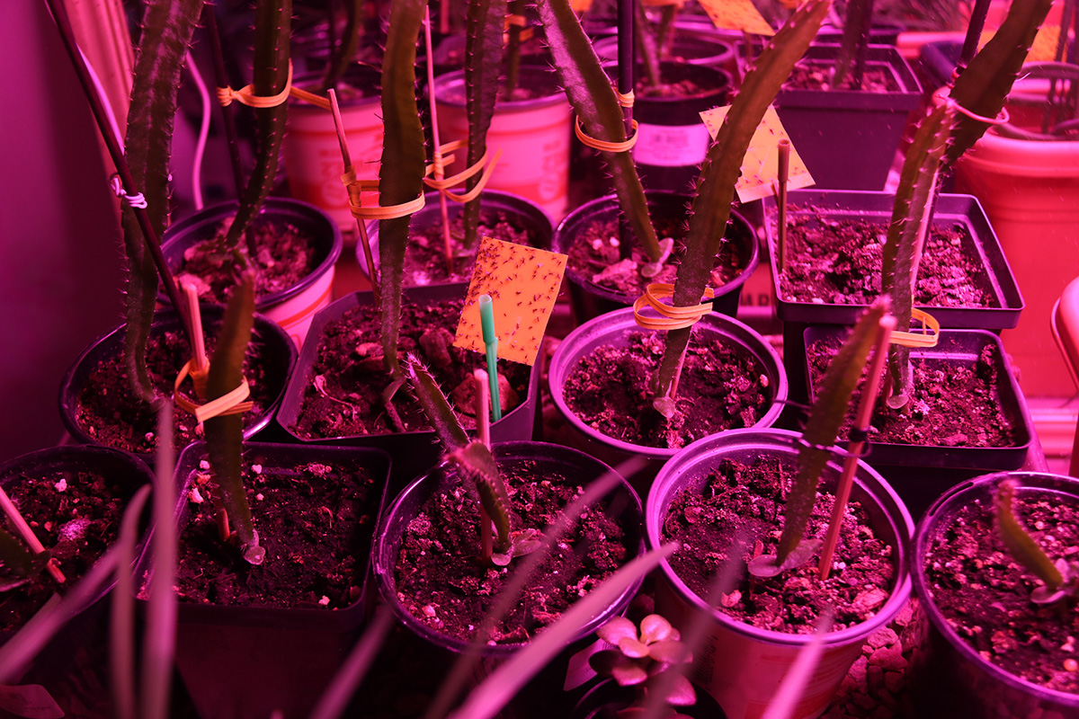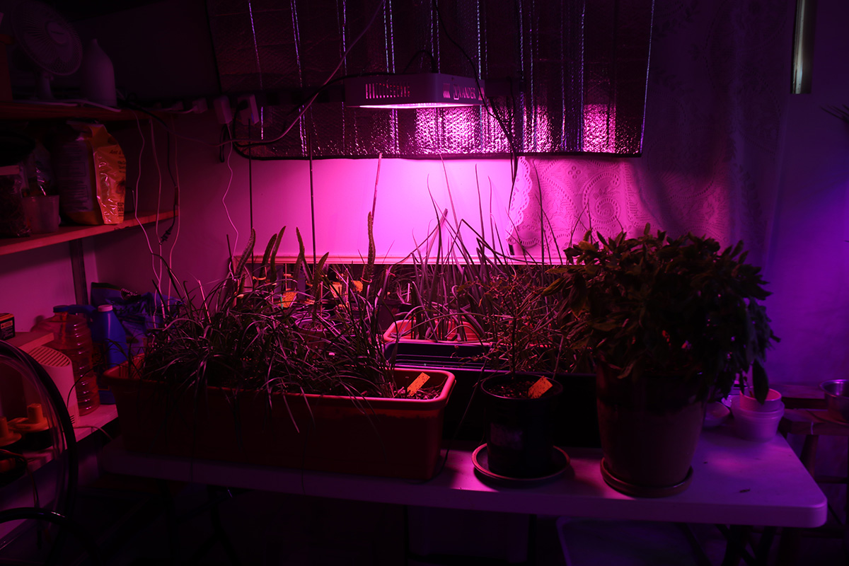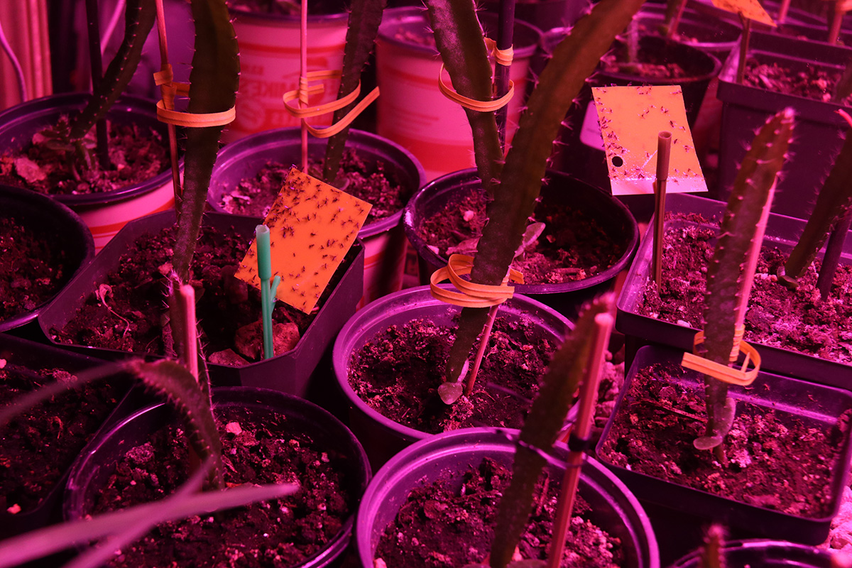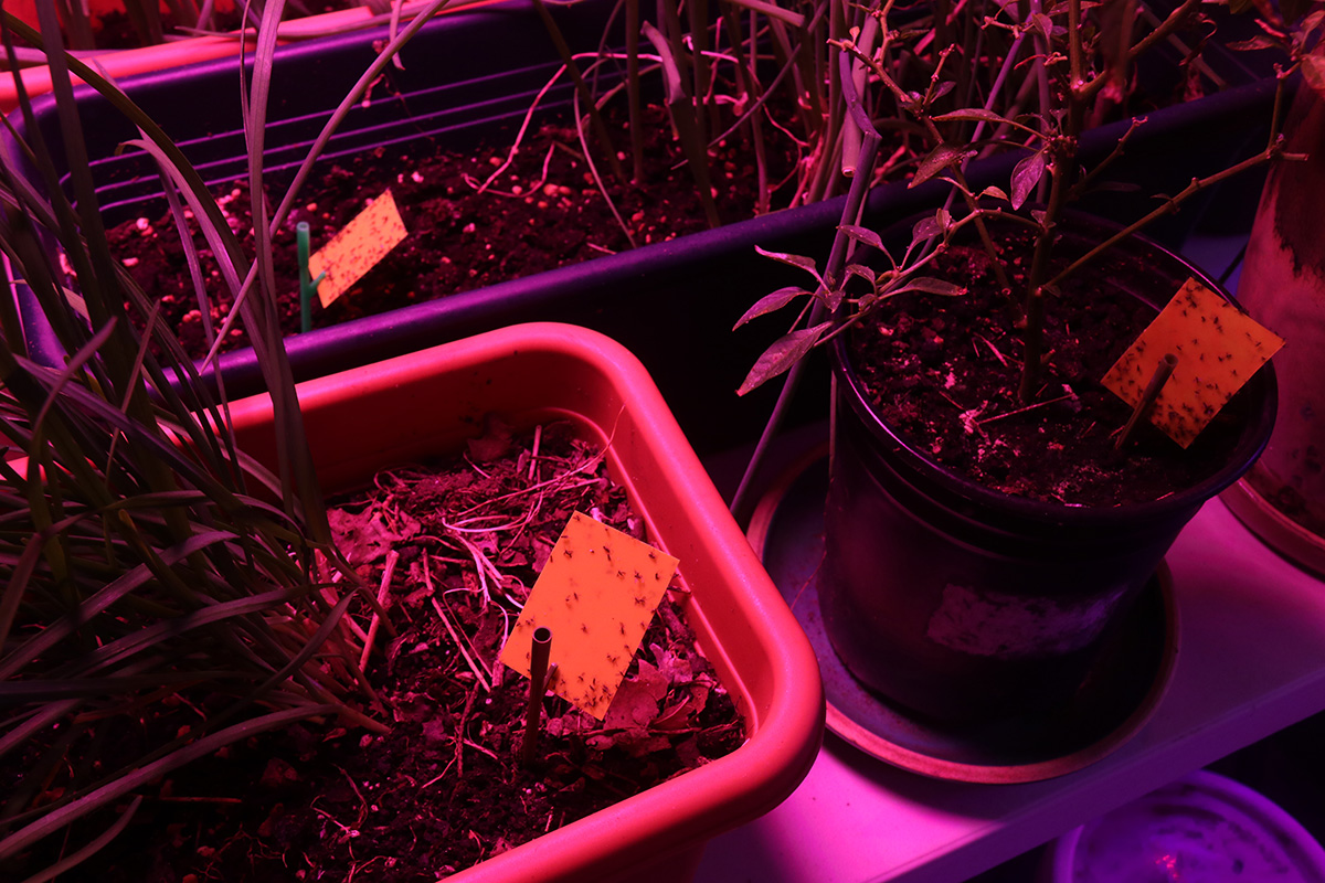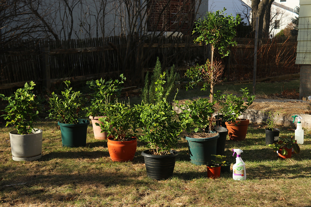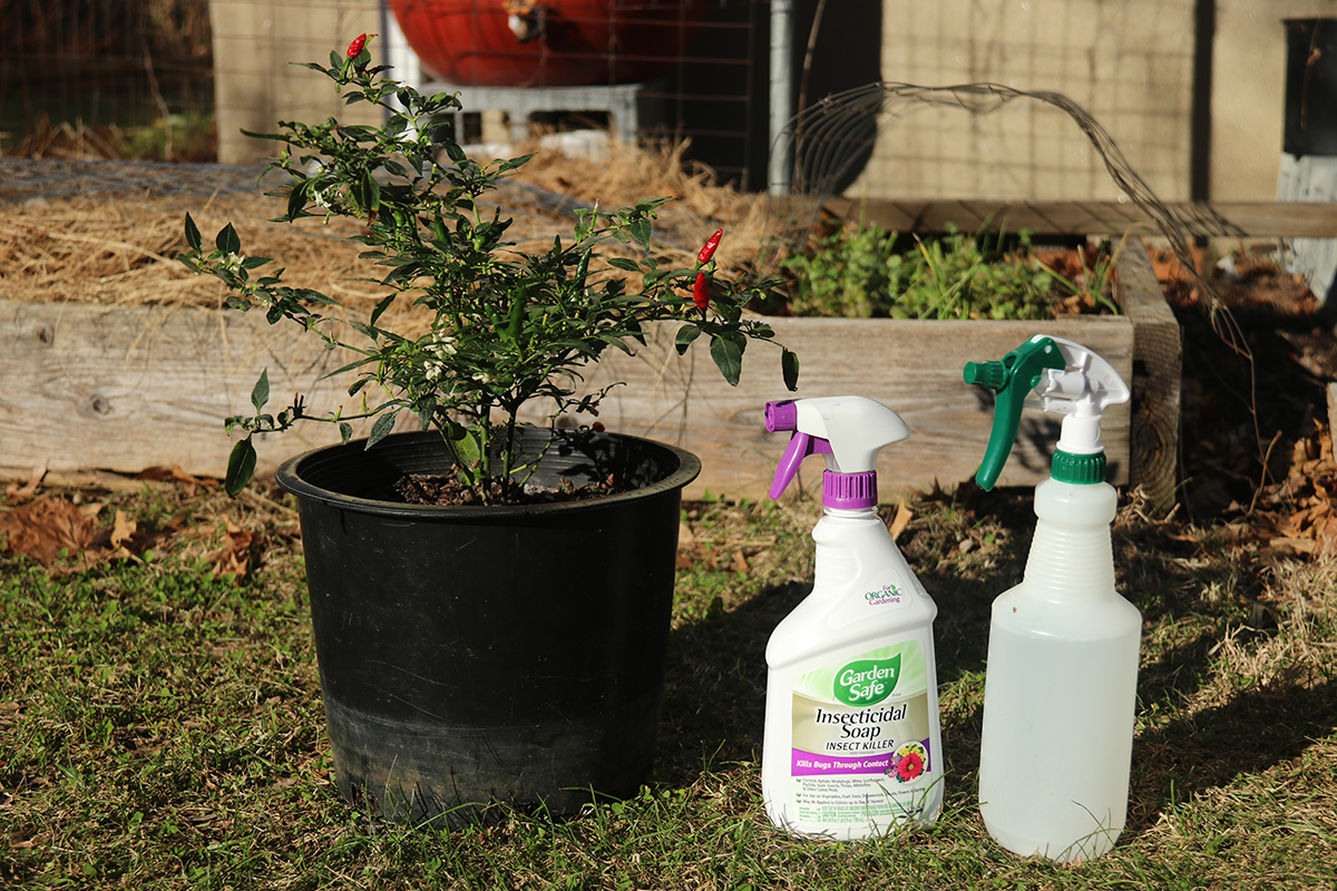 finally i checked the grow room. the yellow sticky traps caught more fungus gnats, but still nothing like before. originally it was going to be a simple inspection, but after spraying the hot pepper plant with insecticidal soap, i ended up moving everything outside to get sprayed, since it was so warm.