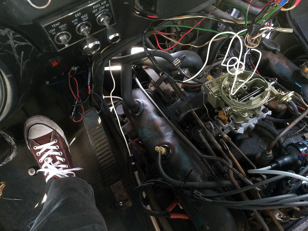 while waiting for kevin to finish with the bathroom, my sunday morning was interrupted once more when i got an e-mail from victor asking for my help, something about borrowing my foot. so i told kevin through the bathroom door i was going out for a minute and walked down to victor's place. he wasn't expecting me so soon, he brewed some coffee and we drank and chatted a bit before finally going out. the help he needed was for me to step on the brake pedal while he adjusted his newly installed brake line, hoping to bleed out the air.