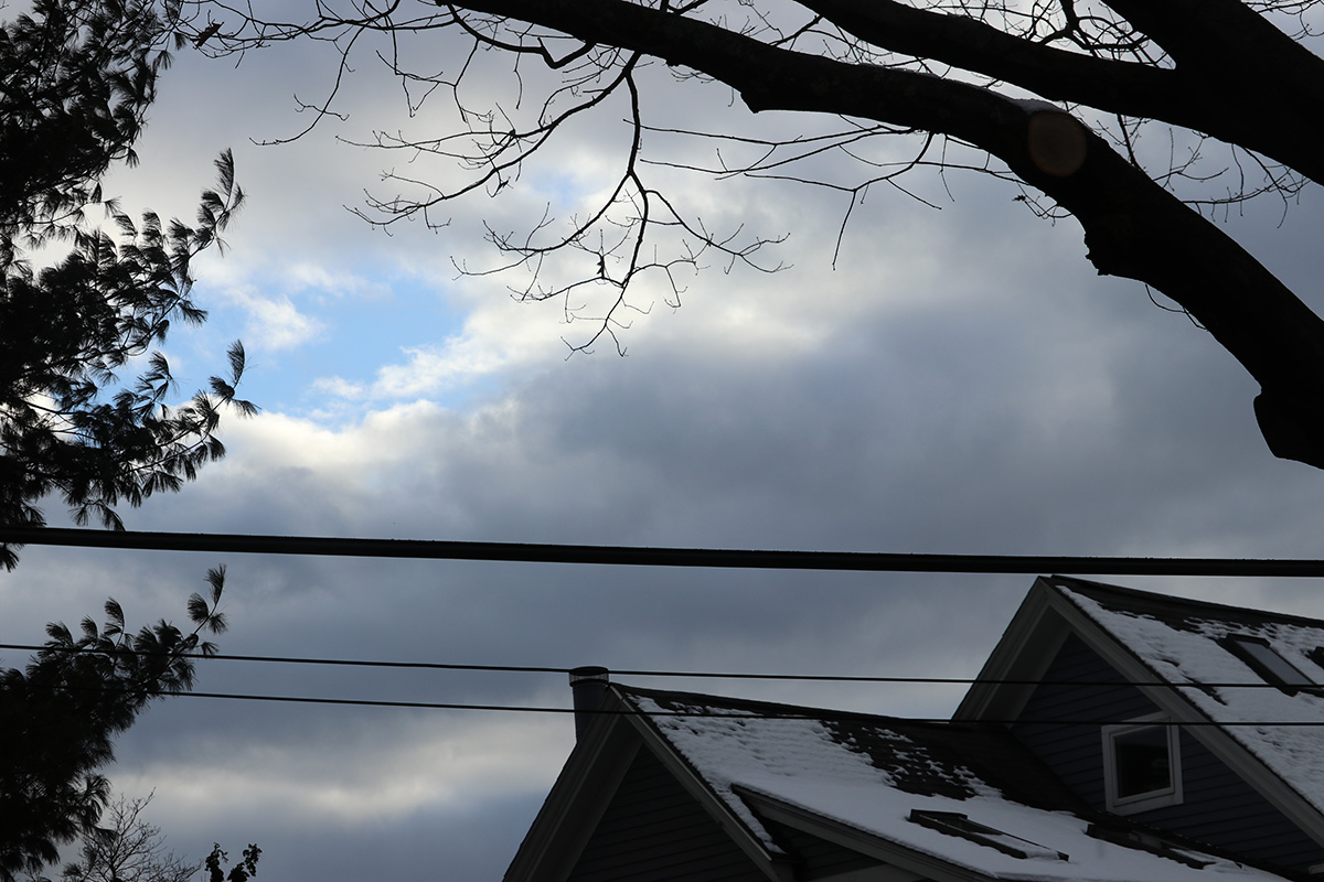 i started with the sunroom from the step ladder, clearing the bottom edge first. i then moved to the east side of the house with the extension ladder, where i cleared the 5 panels on that side. though the roof was in shadows when i first started, by that point the rising eastern sun was beginning to shine on the westernmost panels. from the way i was leaning on the ladder, i couldn't clear any of the sunroom panels. so i moved the extension ladder to the front of the sunroom, and managed to clear all the snow from those panels. i mostly pushed the snow off, with only the bottom few panels i pulled. with the step ladder, i first cleared the bottom edge of the western roof, and my reach was long enough that i cleared the first row of panels as well. finally, with the extension ladder, i cleared the rest of the western panels but clearing the few remaining main roof panels above the sunroom roof.