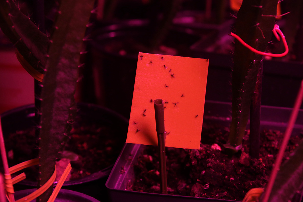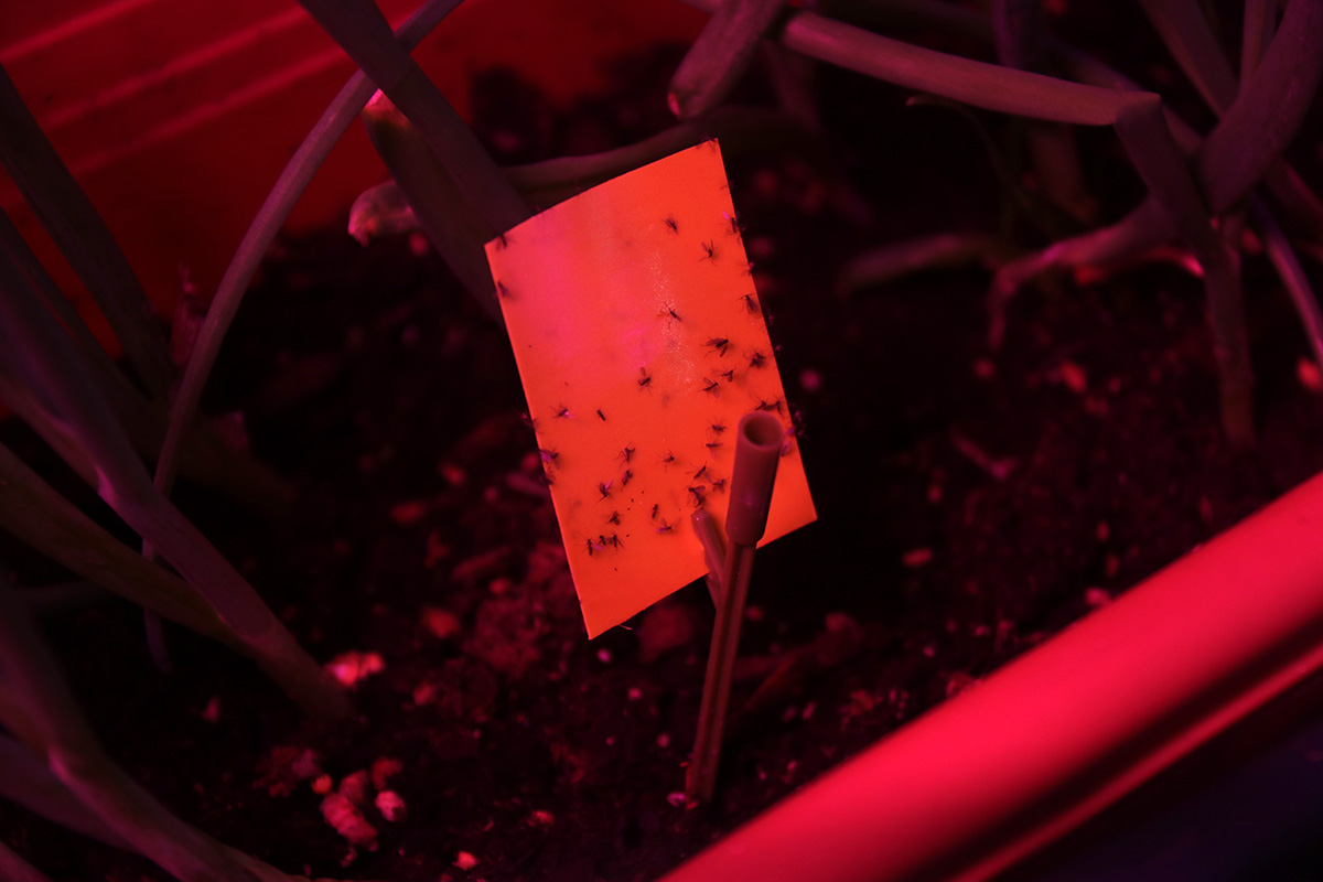 i had an opportunity to check the grow room. nowhere as many fungus gnats compared to a few weeks ago. the chive planter traps had some gnats, but nothing like before when the traps were completely covered with insects. the traps that seemed to have the most gnats were the ones in the lemongrass pot. i don't know if i'll be able to break the gnat fungus cycle when i do the 3rd and final soil drench, but as long as i keep up this regimen of letting the soil dry for 10+ days before a Bti watering, i think eventually it'll kill all the gnats. i took some sticky traps with me, going to set up a few at my place and in the cafe.