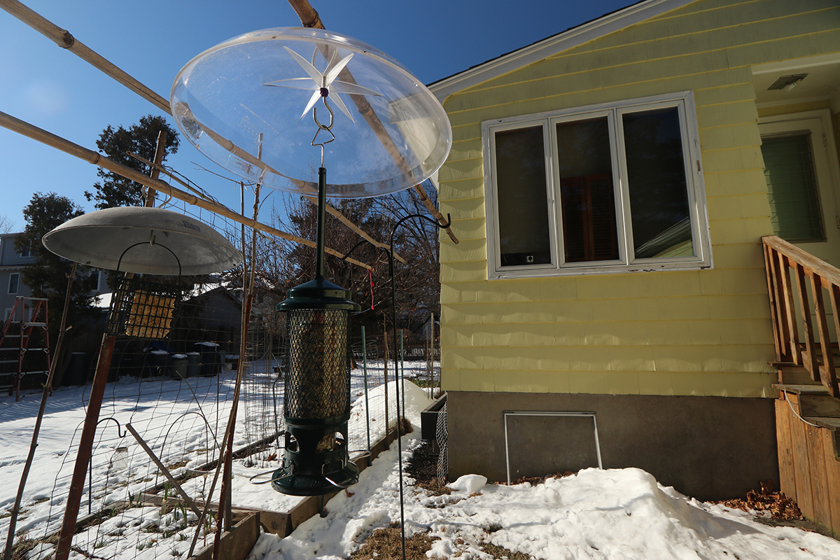 putting away the trash bin was the main reason why i was there. i also started the car and drove it around the block just to make sure it was still working. i then checked the bird feeder (saw some house finches feeding), the solar panels, the furnace (there was already water in the catch bin, after so many weeks where there was just nothing), and the grow room.