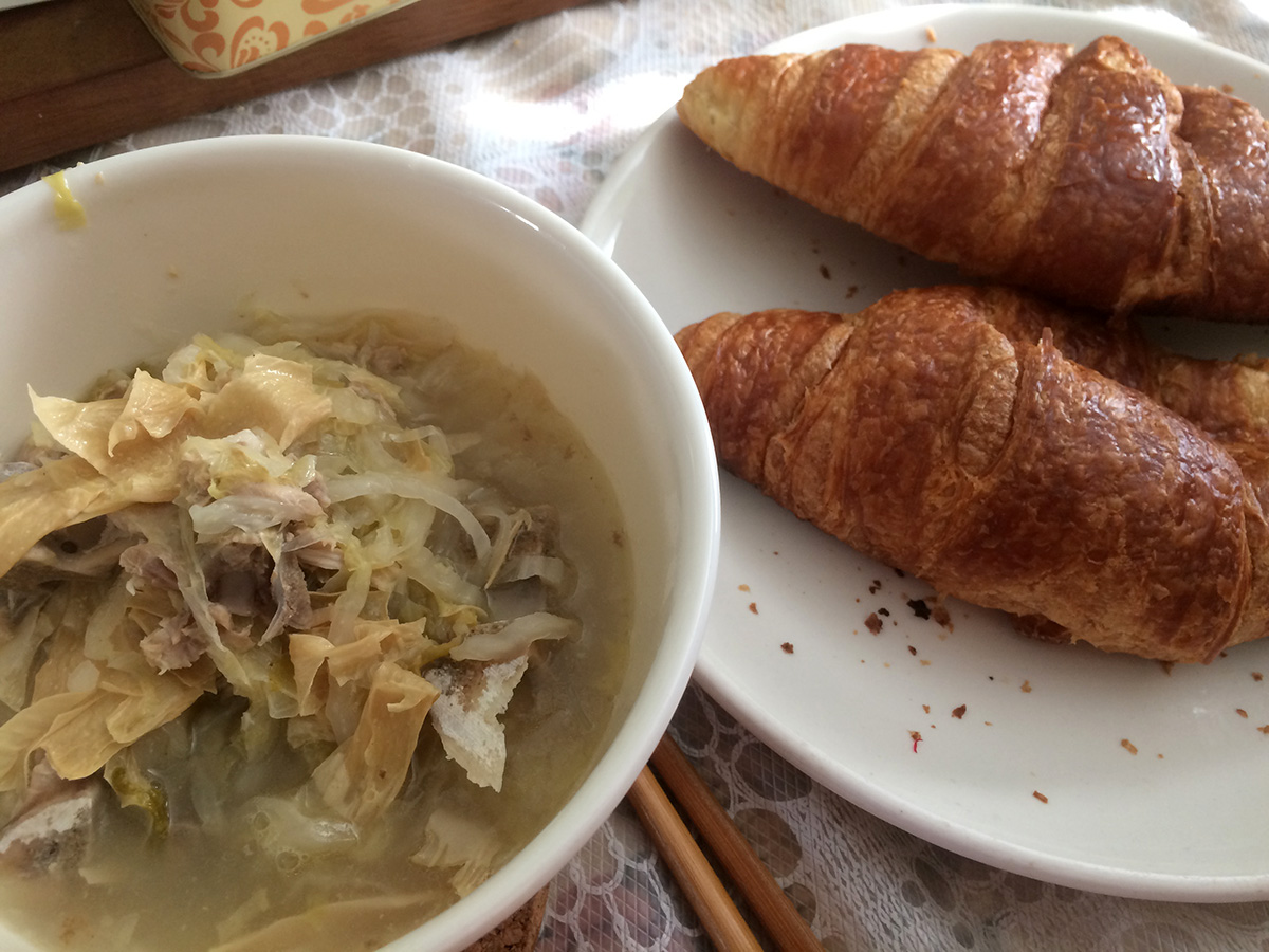 i left kevin at home while i went to my parents' place via bike. i had some sauerkraut soup and croissant for lunch. my mother spent the day catching up on her backlog of netflix shows she missed while she was away in taiwan. i reformatted my father's external memory card as internal memory because his phone has been acting weird; at first i thought maybe it was malware or a virus, but i did a scan and it found nothing. if it doesn't work, we'll need to wipe the phone and reinstall everything.