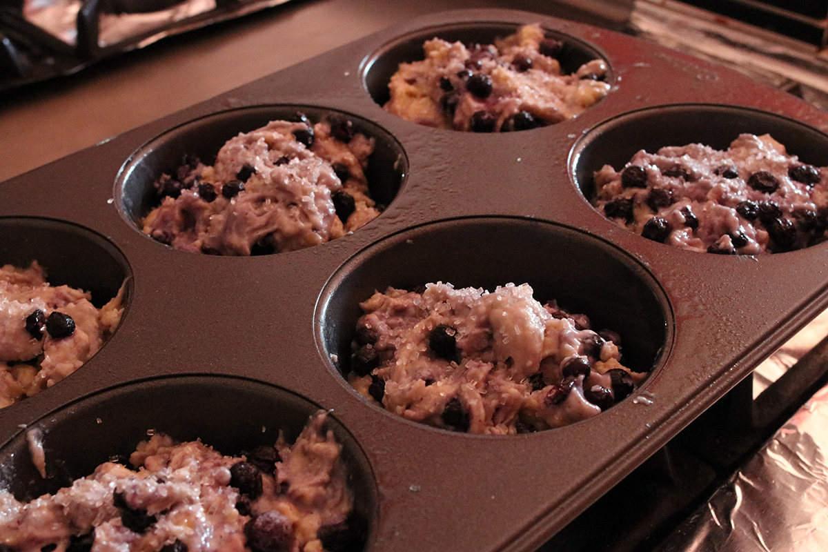 i dug up my old time-tested muffin recipe, the cake flour jumbo blueberry muffins. same as last time, except i was using all wild blueberries this time around (didn't have any norma blueberries). i also finally got some sparkling sugar months ago just for this occasion, to sprinkle on top of the muffins before they get baked.